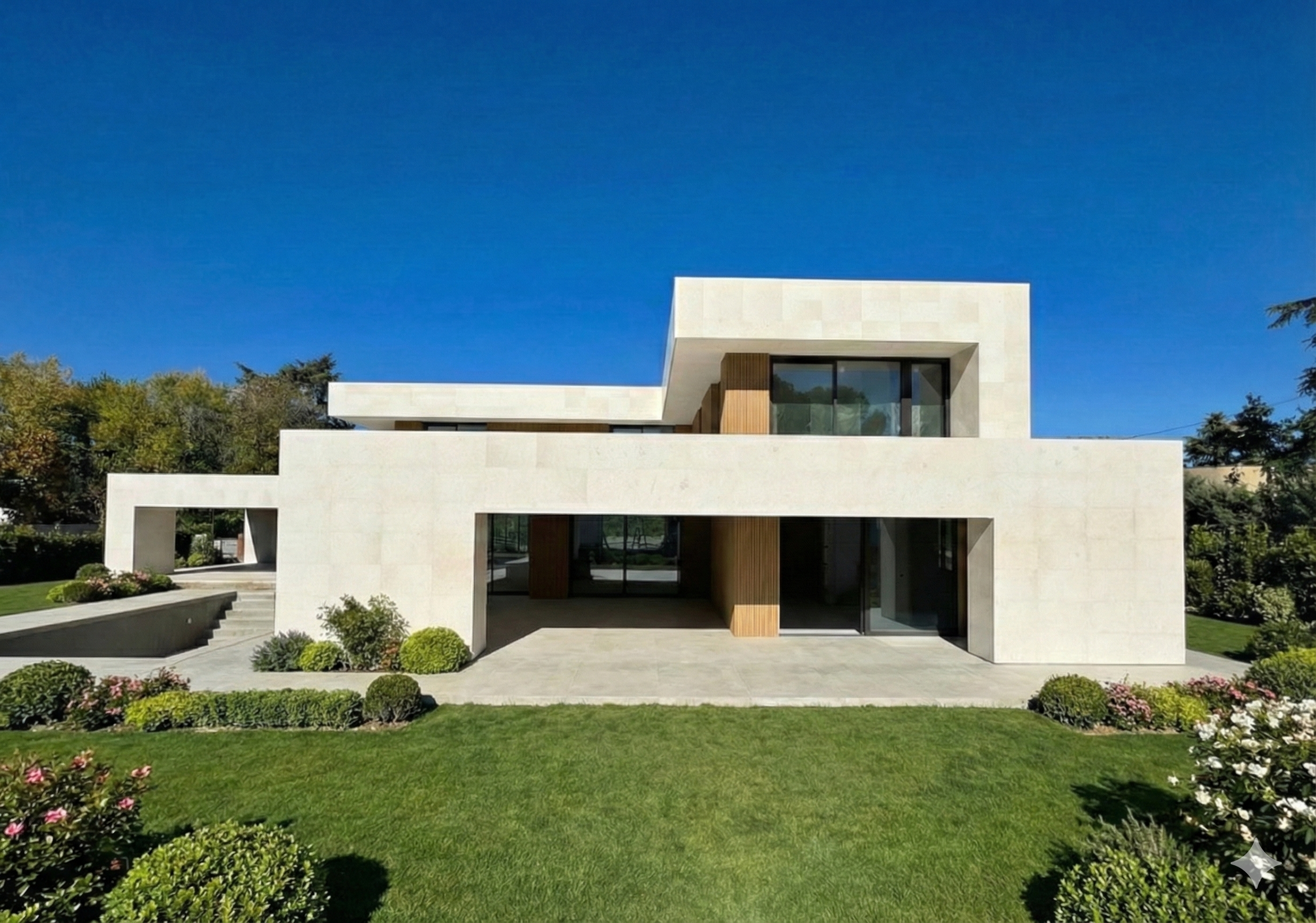 jardin minimalista con cesped y plantas arbustivas