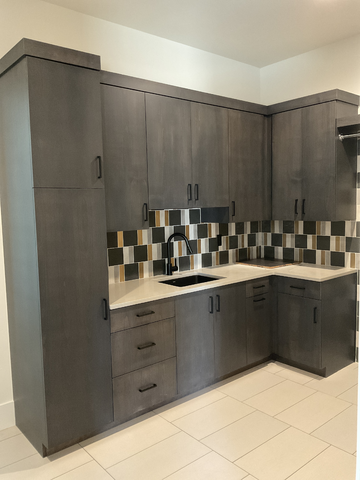 do not change the cabinets in any way preserve the exact cabinet colors materials finishes dimensions door and drawer styles hardware spacing alignment and all geometry exactly as shown do not alter the countertop shape backsplash appliances flooring lighting fixtures or wall structure only remove the construction materials clutter and mess from the scene clean the room and make it look finished and staged add a few simple tasteful home accessories appropriate for the style of the space but do not add or remove any furniture windows or architectural elements maintain the original lighting direction and realism enhance clarity and polish the photo while keeping the cabinetry and room design completely unchanged do not alter the lighting to keep the cabinet colors as they are in the image stage for a laundry room