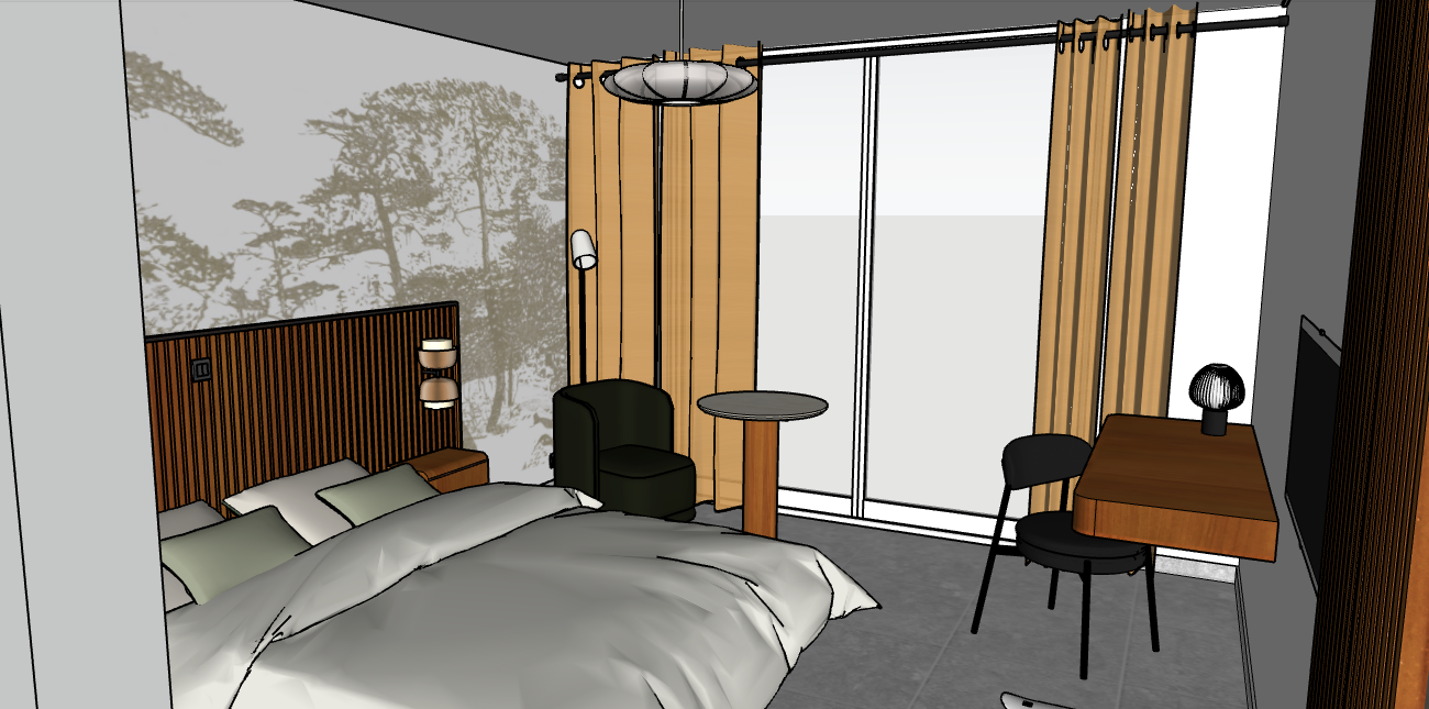 allume la lumi re int rieure y compris le ruban led sur le haut de la t te de lit les chevets et la lampe sur pied la lampe du bureau eclairci legerement l image