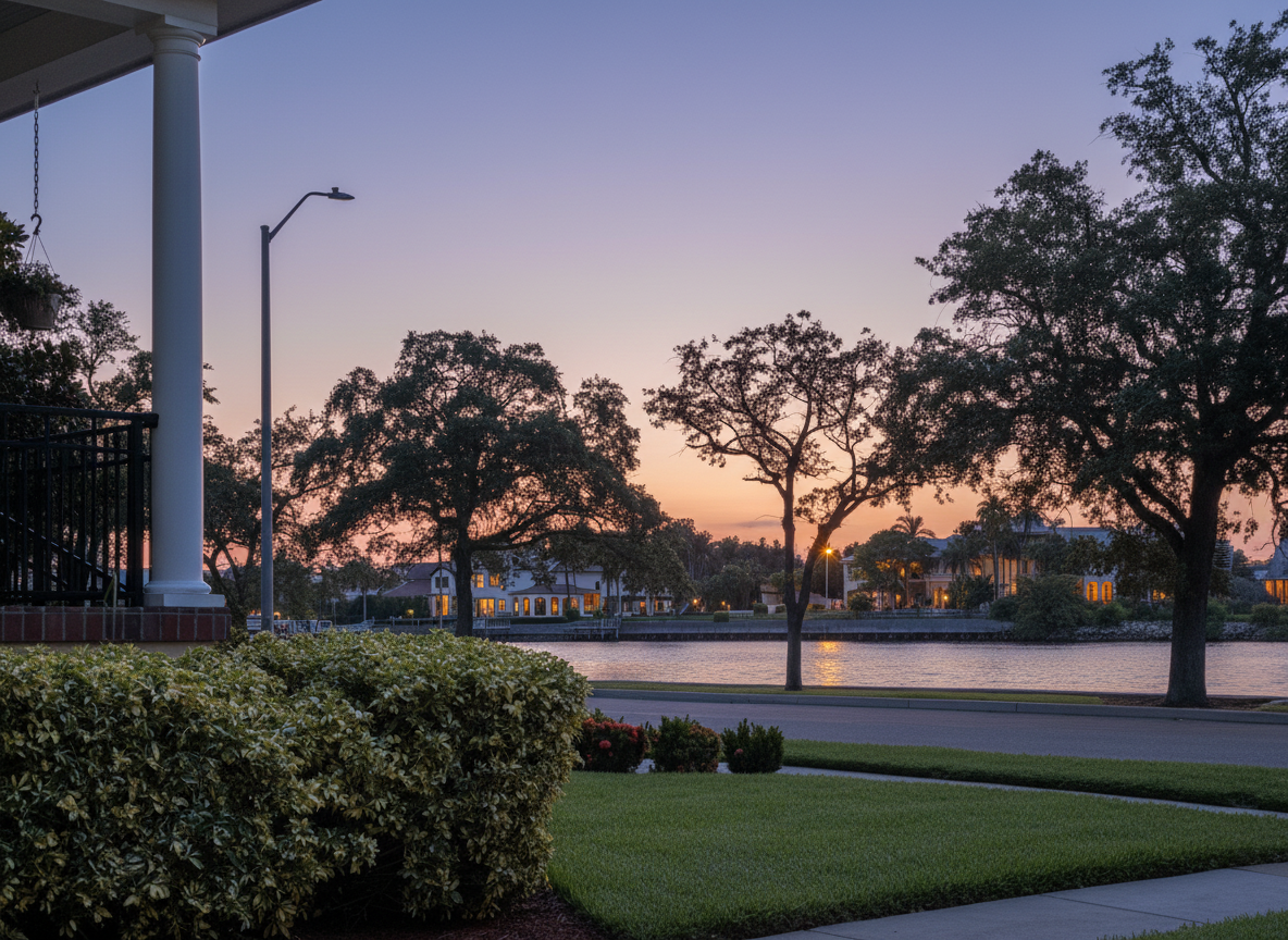 perspective shot create a twilight visualization scene for this photo architecture