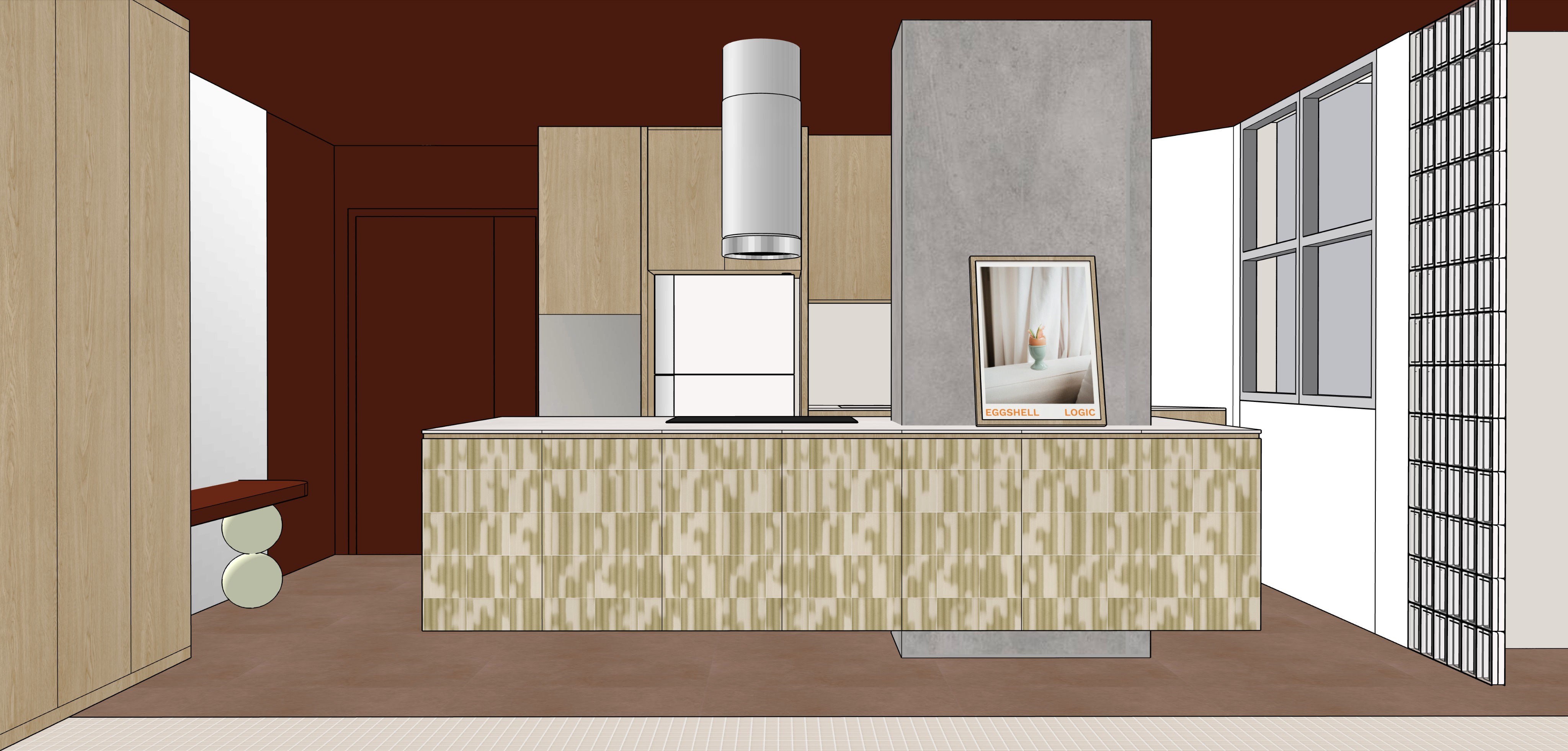 fridge is white keep red intent on ceiling and in foyer area including main door