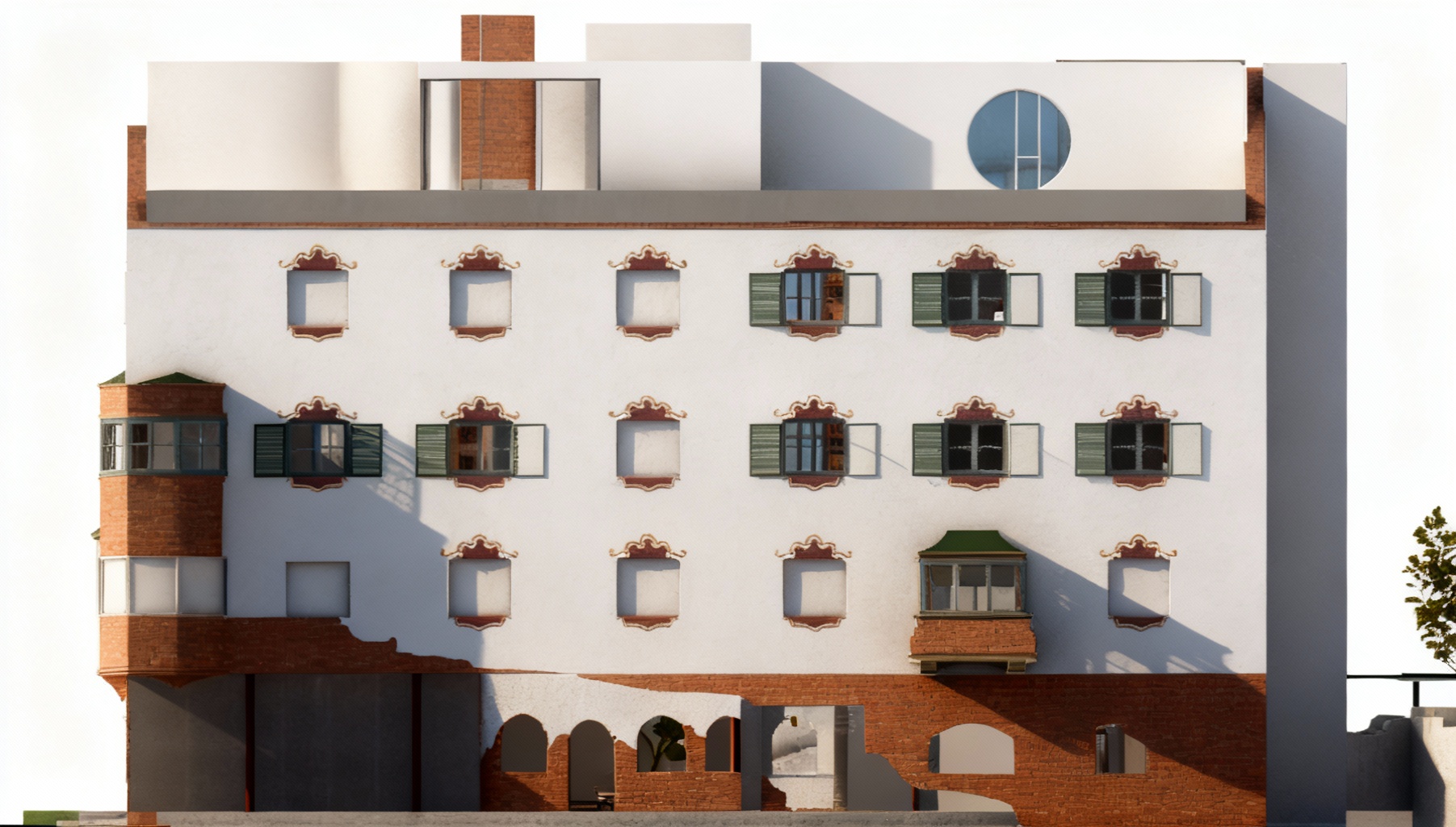 wide angle shot white building white roof remove ladscape and surroundings no invironment architecture