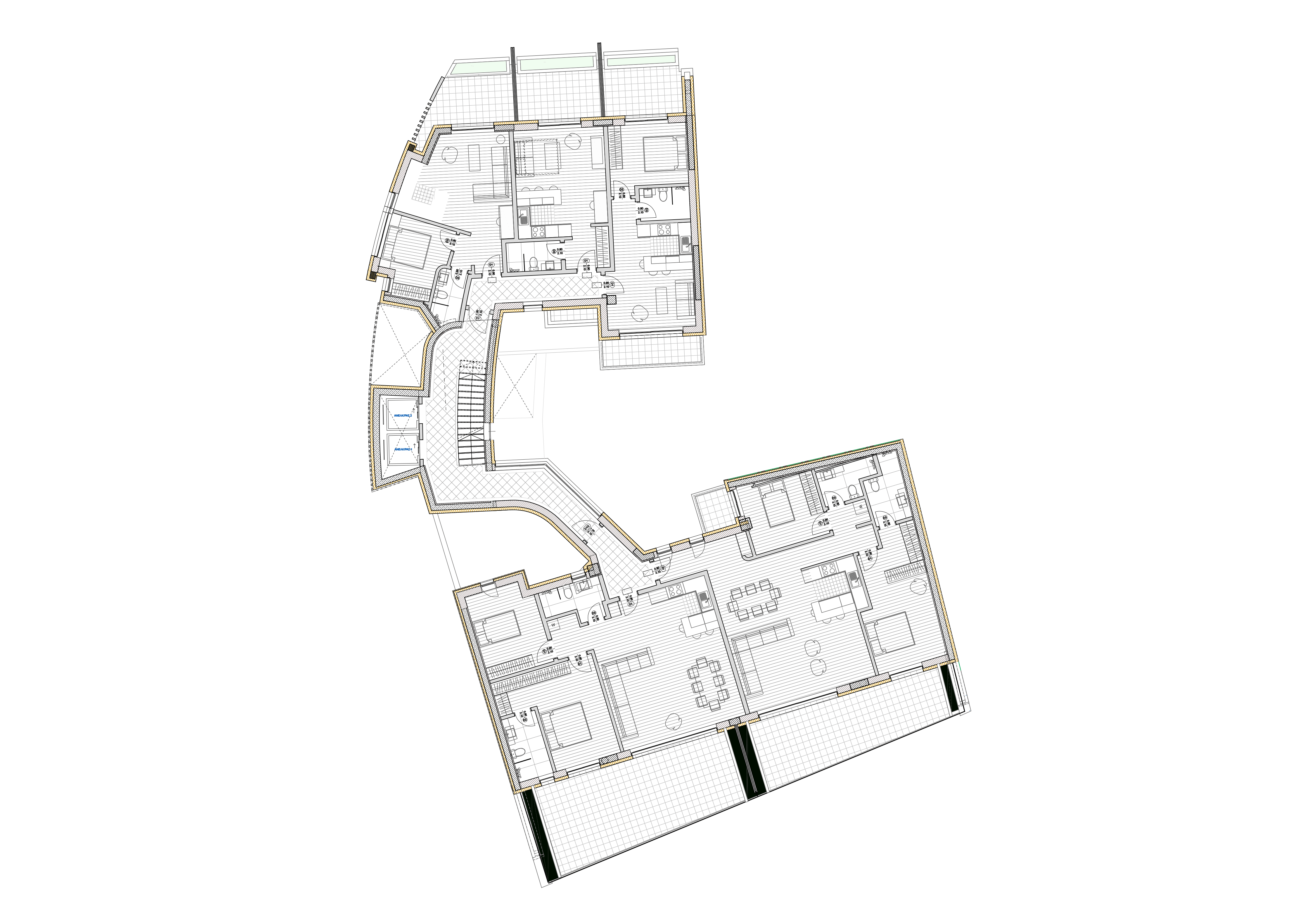 convert this floor plan into a realistic isometric 3d view of a full house show the space from an elevated angle with furniture walls and details visible convert this 2d architectural floor plan into a fully detailed 3d isometric apartment strictly preserving the exact layout walls room sizes and proportions with a right angled isometric view viewed from the right side not top down flat generate a modern luxury interior fully furnished according to room function living areas beige ecru sofas with brown cushions wooden lounge chairs modern layout kitchen and dining areas black marble kitchen countertops and black marble dining tables elegant modern kitchens chairs wooden chairs with white upholstered seats materials warm wood flooring neutral tones minimal modern design clean geometry lighting soft natural daylight realistic shadows high end architectural visualization style isometric 3d architectural render open top walls visible depth professional real estate visualization no changes to floor plan layout no incorrect room placement maintain exact structure and geometry no distortion minimal luxury interior clean white background ultra realistic archviz render use the same furniture as shows on the plan do not change the orientation of the floorplan