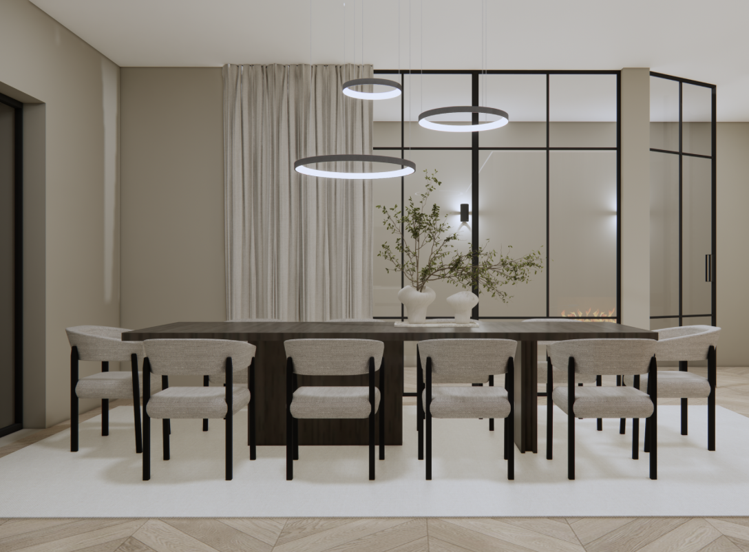 make it photo realistic and better quality keep everything exactly as it is from the design wood is medium brown natural soft daylight daytime in the views in the windows mountain view