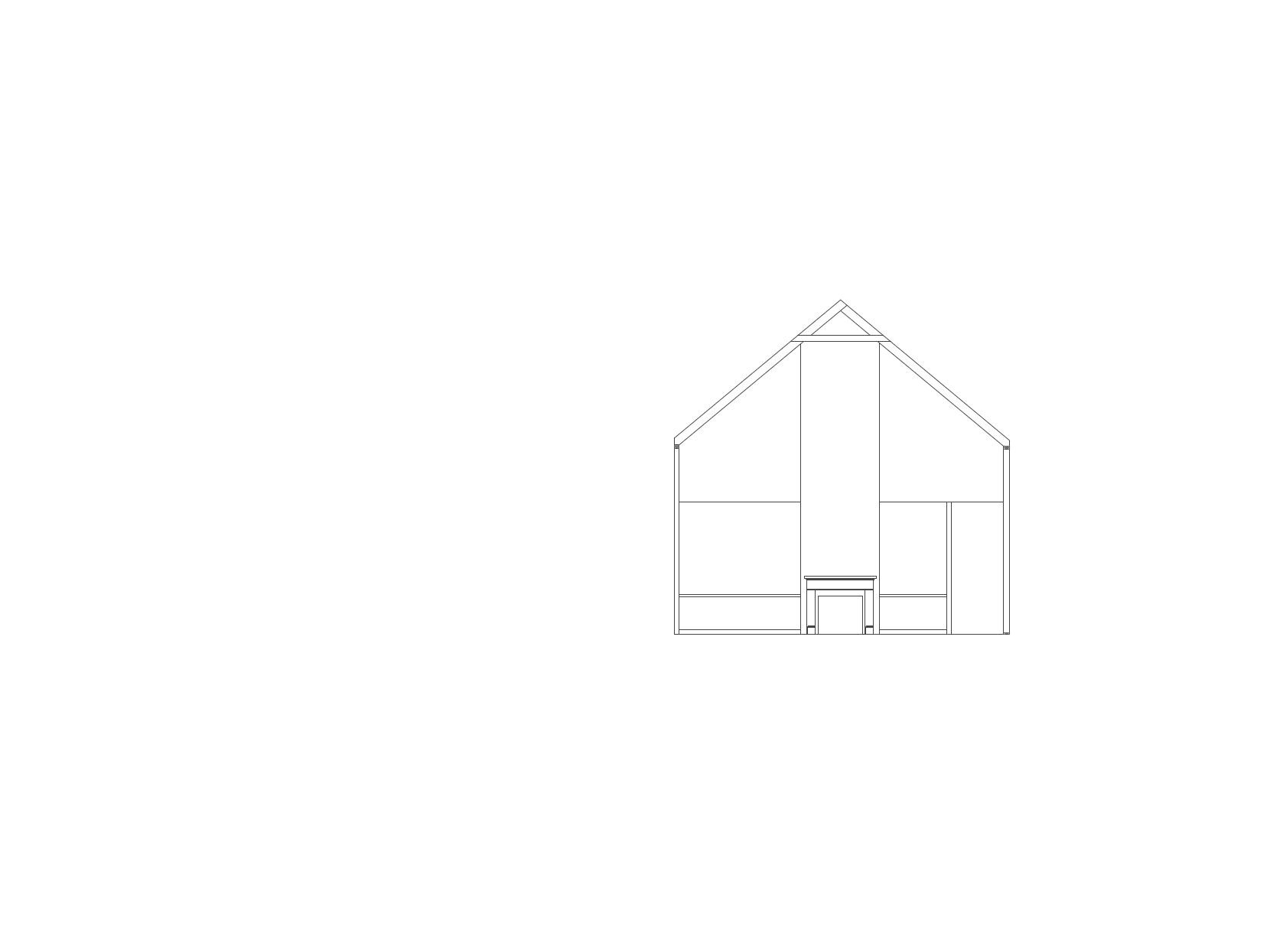 render cathedraled living room wall with fireplace and book shelves