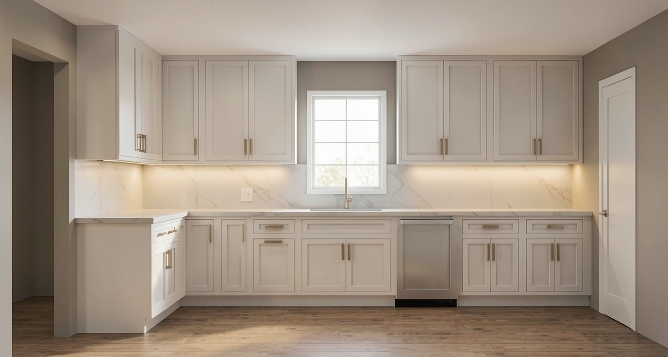 do not change layout and colors no outlet on the wall dishwasher panel must match cabinets exactly in color and material no variation no reinterpretation no ai modification