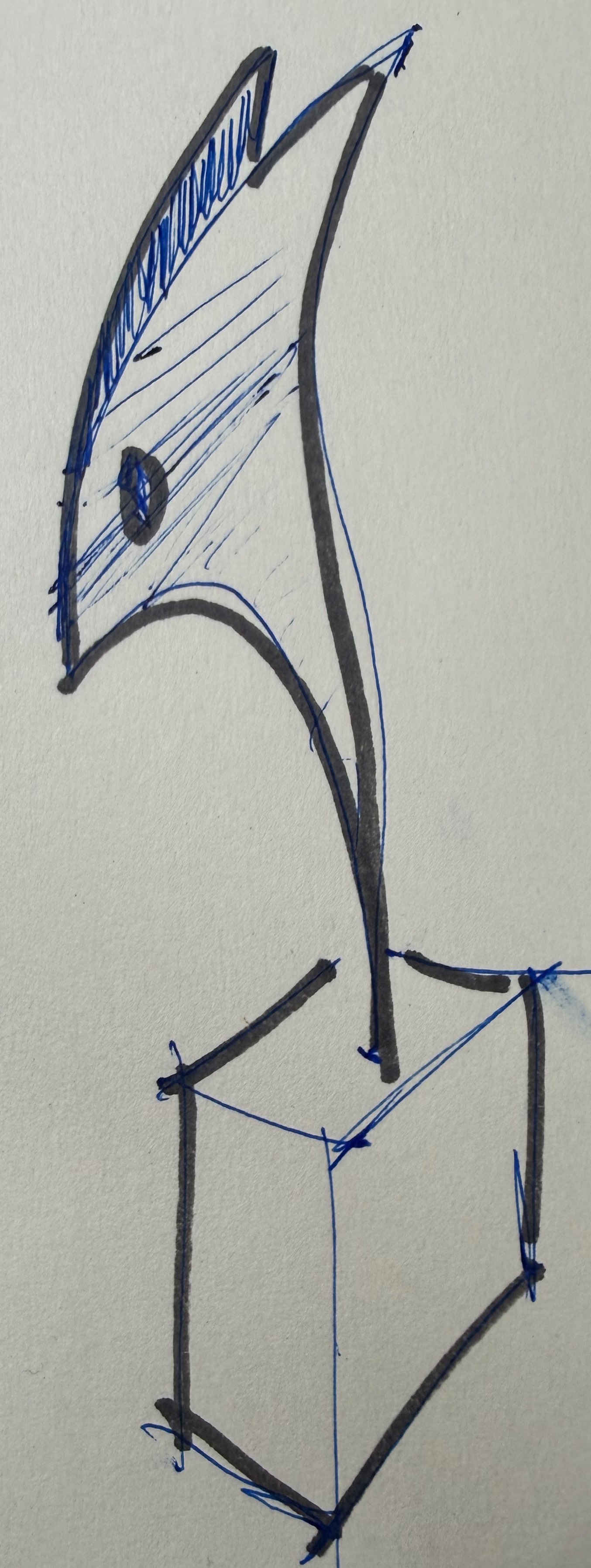 the drawing will depict a bird made in two equal parts joined at the beak and tail where it will be attached to a wooden base the material will be highly polished galvanized steel and the wings will be perforated with two holes to simulate the bird s eyes