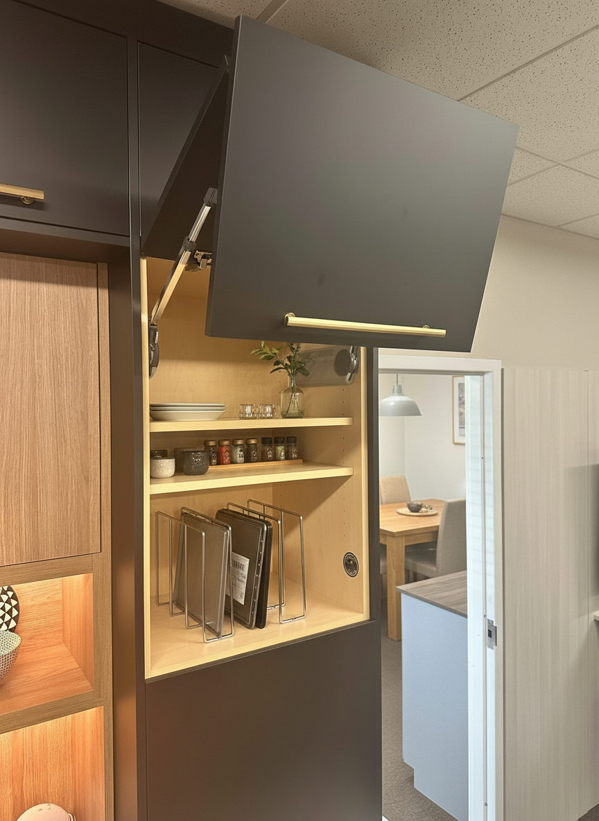 natural kitchen lighting change the background on the right side to a dining room put cookie sheets vertically in the metal dividers stage the shelves add drywall to the ceiling