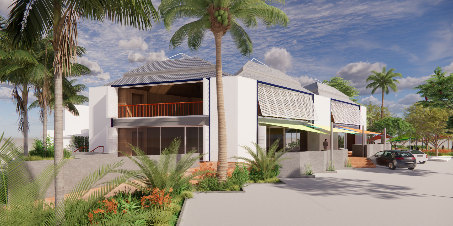 modernist exterior shot make white walls a colorful shingle gradient pattern architecture
