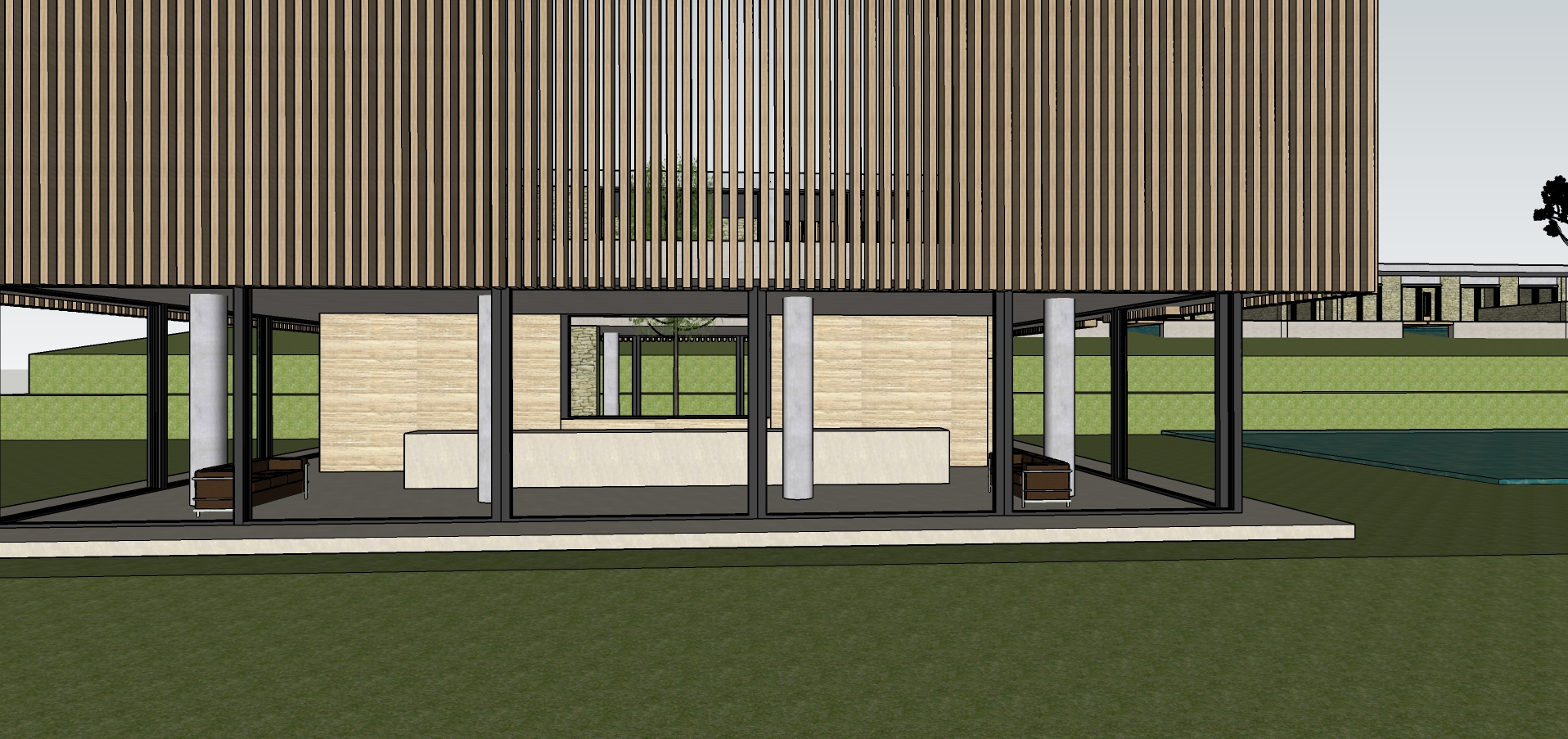 this is a hotel reception modern minimal style with traventine wall and wooden details into the olivegrove