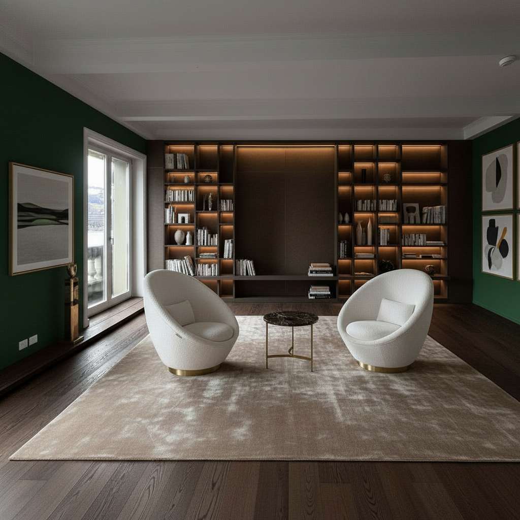 replace only the back panel in the central open section of the bookshelf with white marble bianco carrara featuring subtle natural veining everything else must remain completely unchanged furniture lighting colors materials proportions and perspective must stay identical do not modify shelves wood tones lighting warmth or the surrounding environment