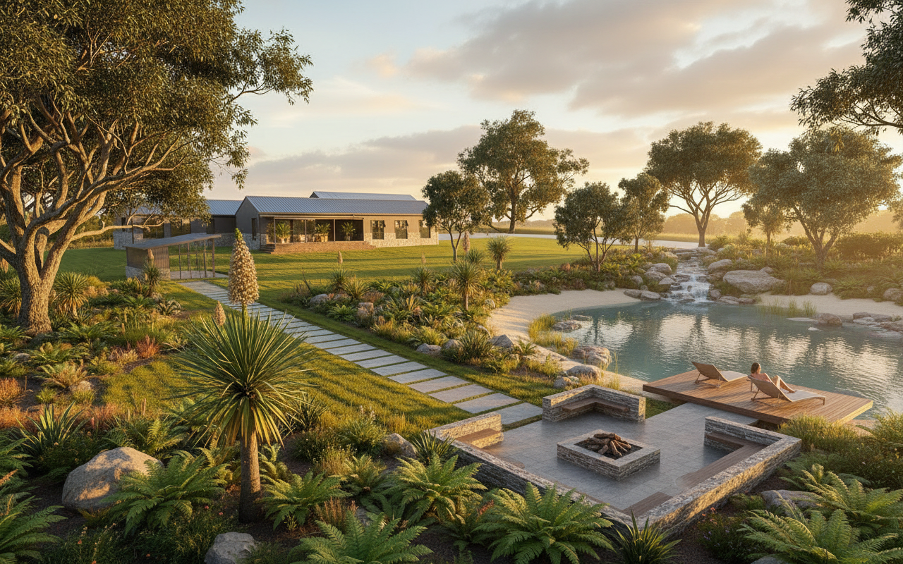 exterior shot adjust the image by adding only the elements shown in the reference images included in the moodboard specifically the vases plants and books no other new elements should be introduced after placing these items enhance the image to make it more realistic improving lighting shadows material textures and overall visual depth while maintaining the original design intent