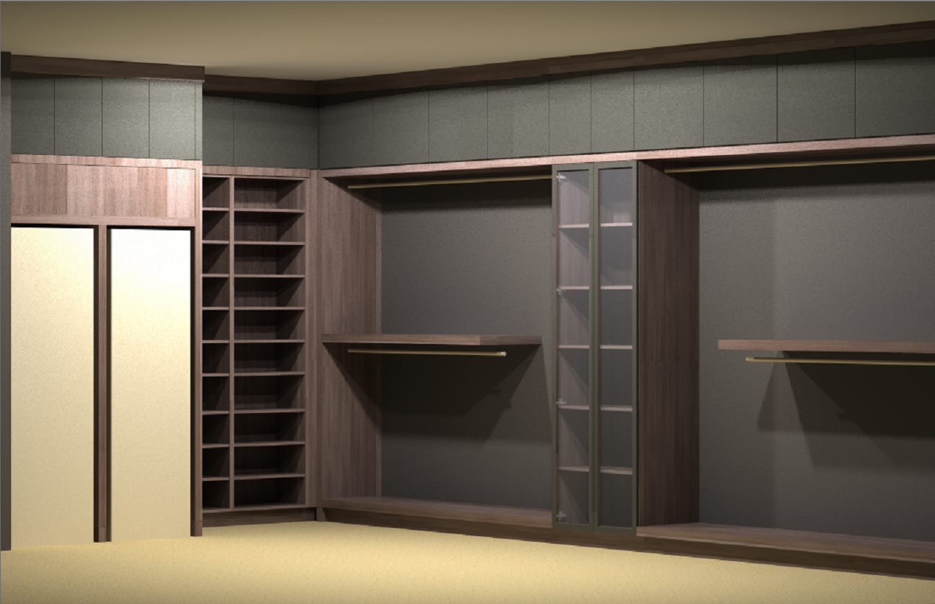in the open shelving section i want you do add some vertical leds and some folded clothes