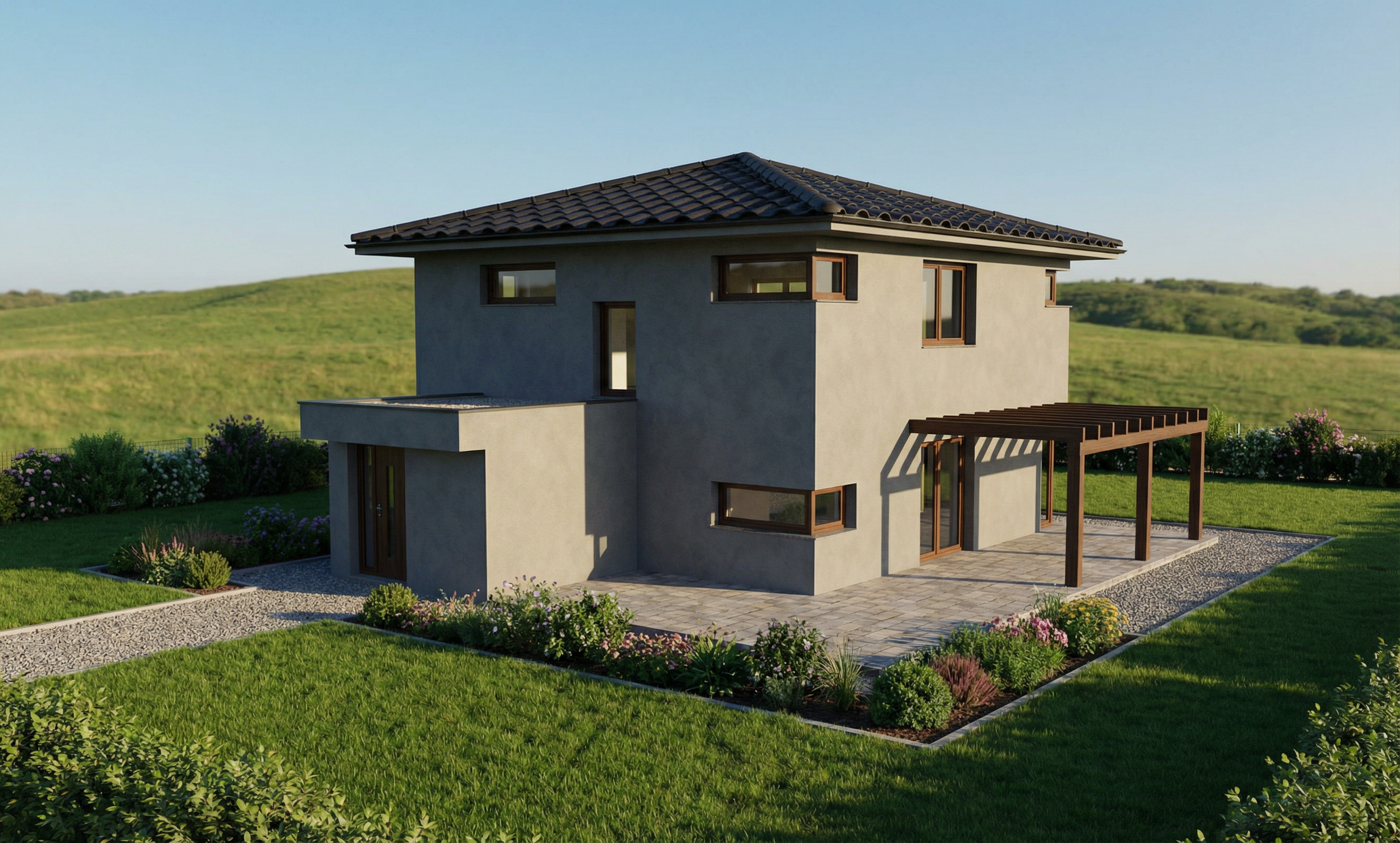 ud lej zahradu se stromy za domem kopec slunce