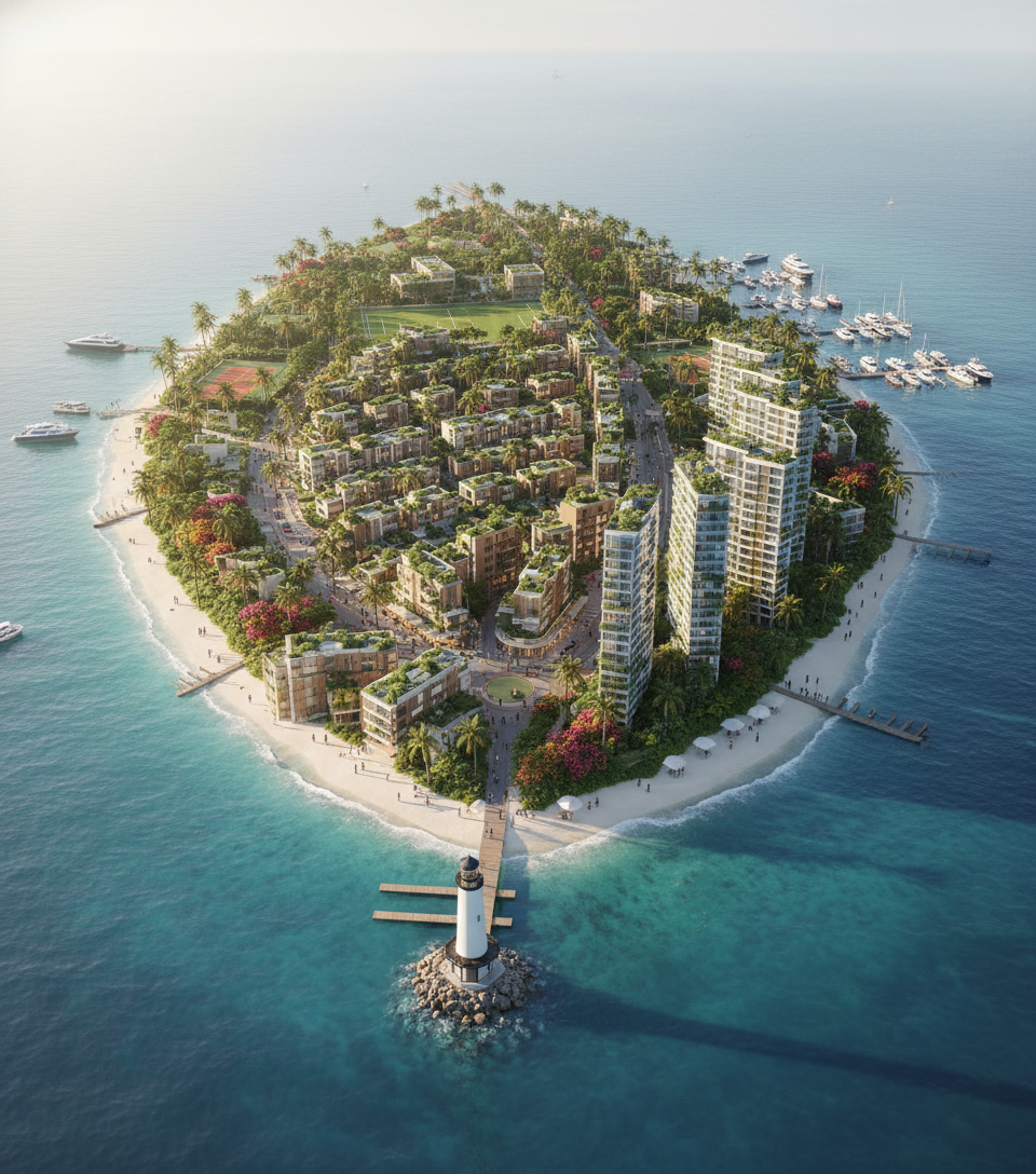 modern two story house with a minimalist design and elegant beige stone cladding complemented by white accents large glass windows reflect the clear blue sky adding a sense of openness the lush green lawn stretches across the foreground creating a vibrant contrast with the house in the background the garden features vibrant red flowers and rich green foliage with a line of trees adding depth to the scene the atmosphere is serene and inviting with a sunlit outdoor dining area under a creamy pergola overall a tranquil and picturesque setting