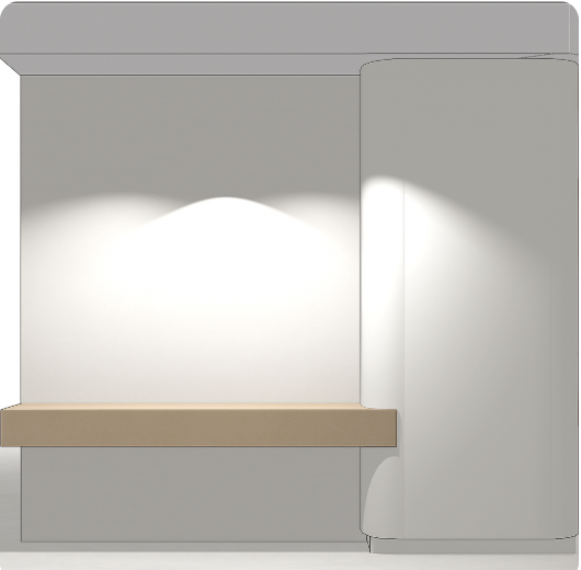 change the wood shelf to a travertine stone finish add a white grass cloth wallpaper on the back wall above the shelf and below