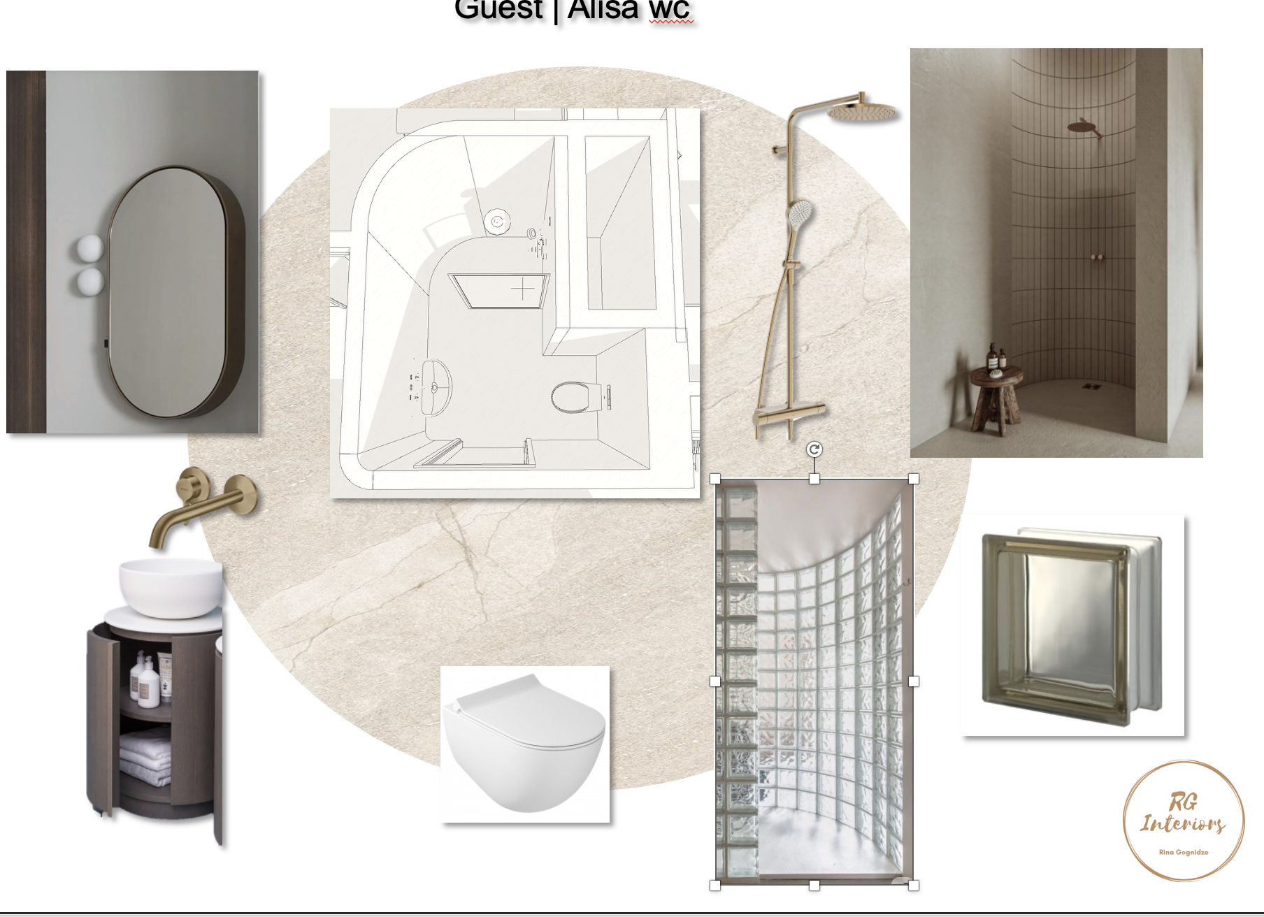 guest wc with glass block curved wall in the shower zone single basin