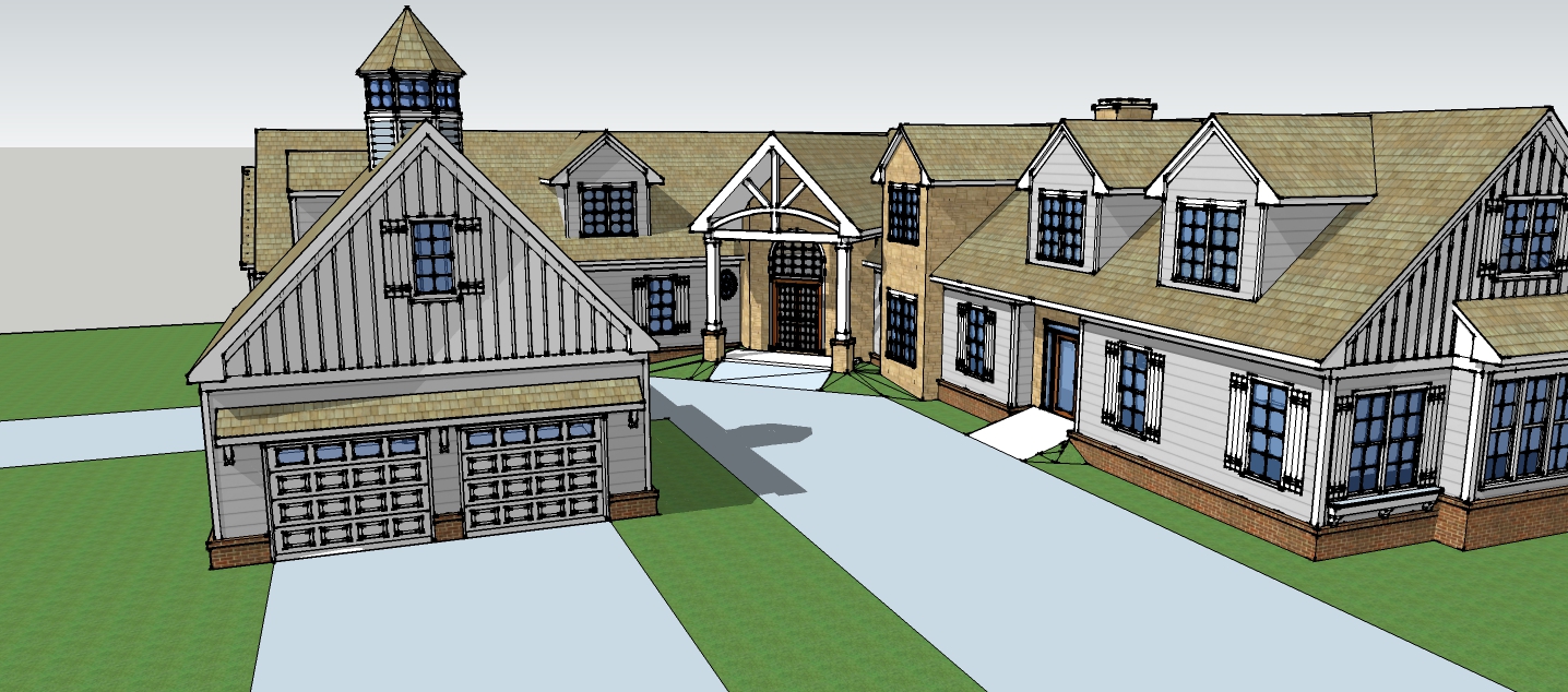 a charming country house two story with a wrap around porch and a sloping staircase the walls are painted a soft warm cream complemented by rustic wooden beams in a rich oak finish the roof is a calming sky blue with matching shutters on the windows the porch railing is a classic white the overall atmosphere is serene and inviting with a clear blue sky overhead and soft golden sunlight casting gentle shadows