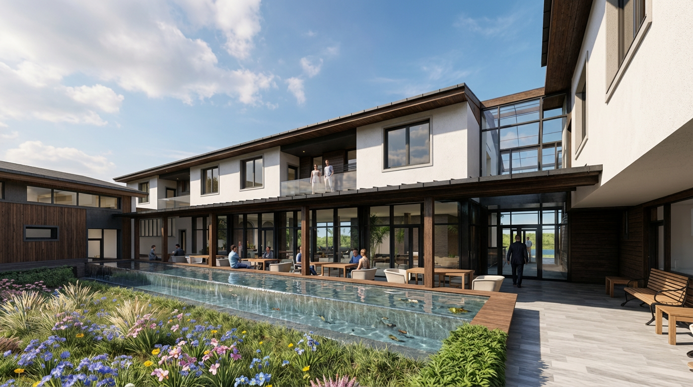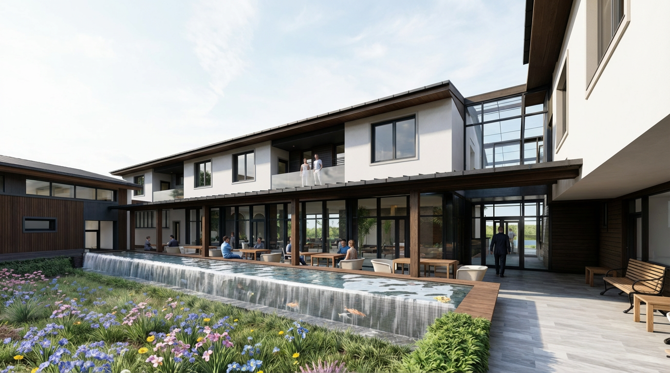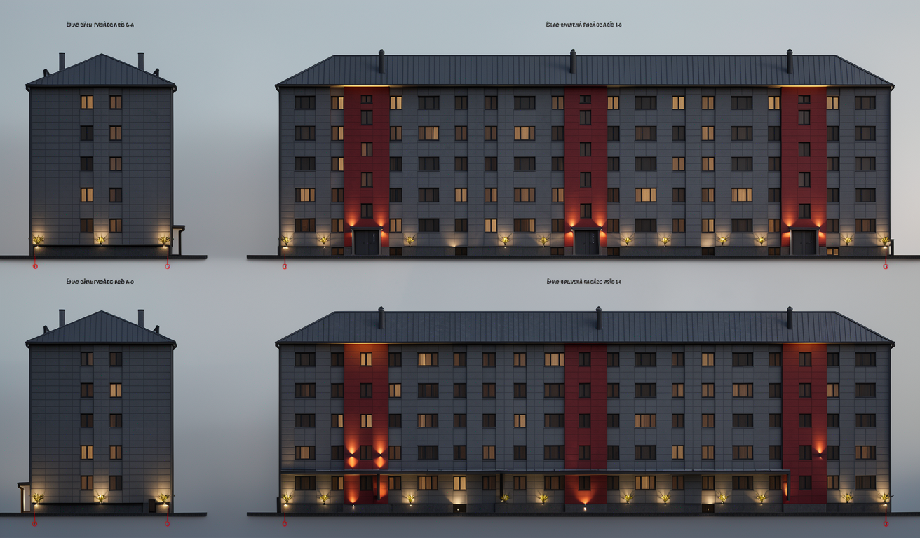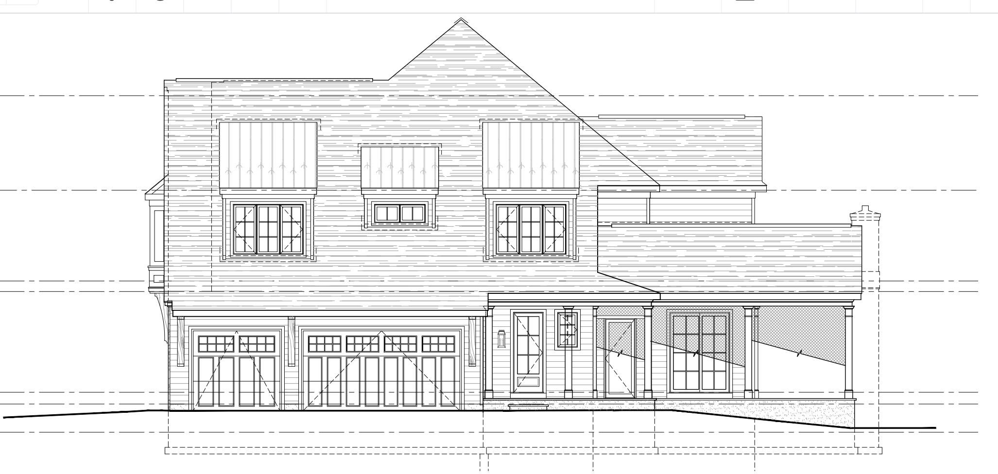 use the provided elevation as the base image keep the elevation exactly the same do not crop zoom resize or reconfigure the image in any way maintain the original structure proportions rooflines dormers and all architectural elements exactly as shown do not redesign reinterpret or add any new architectural elements beyond what is listed critical restrictions do not add any roofs awnings or overhangs anywhere on the elevation do not add a shed roof over the garage doors do not change the roof massing in any way do not add wood details to columns or walls only modify elements as explicitly listed below material updates main siding clean white siding on all vertical wall surfaces main roof black asphalt shingles dormer shed roofs only lighter black or medium dark charcoal standing seam metal with subtle reflectivity to contrast with main roof garage doors white columns painted white do not change shape or add wood details all windows and doors black remove all wood corbels add three black wall mounted sconces in specific positions not automatically aligned or synced one on the left of the single garage door one on the right of the single garage door one on the right of the double garage door rendering instructions make the elevation a high end photorealistic architectural rendering with realistic lighting shadows and material textures emphasize contrast between the dormer metal roofs and the main roof keep the design true to the original with a clean and natural background