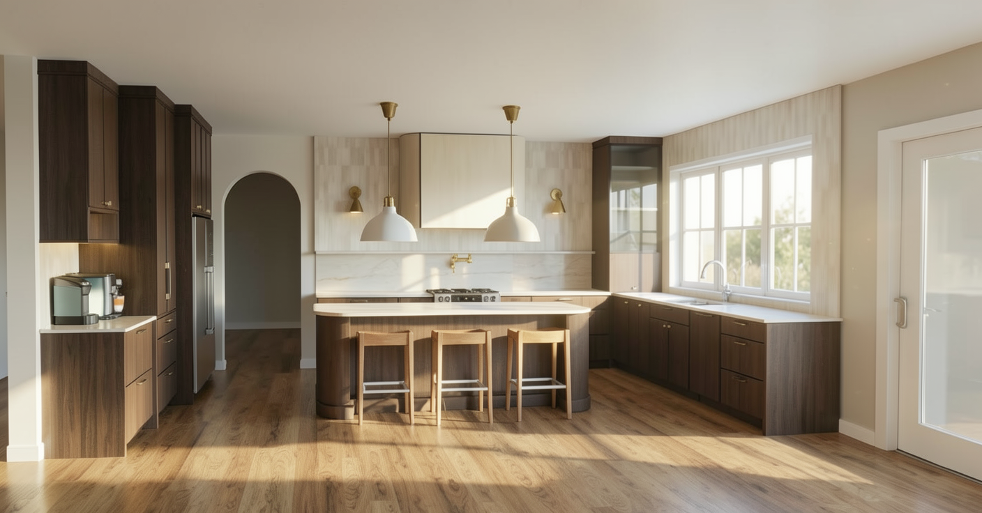 create and orthographic realistic floor plan with furniture and decorating in this entire home cutaway only 5 off the floor no railing on front porch and round columns on rear porch show details of floor plan show furniture on front and rear porches create a realism photo