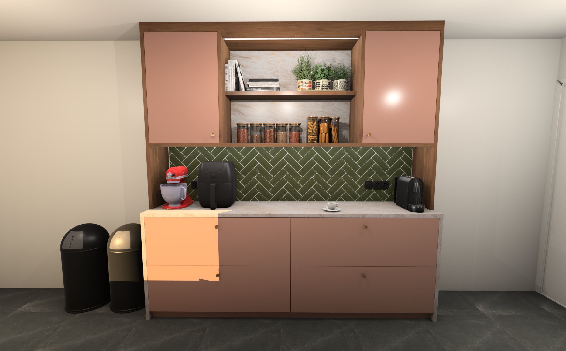 add a dog s nest on the right side next to the cabinets also make the lighting sharper and more realistic