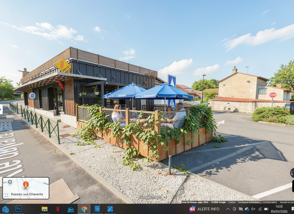 make as photorealistic as possible while keeping textures the same as selection professional landscaping in a lightly wooded scene with good lighting match materials to plan and remove any text siding color beige shake color beige brick color cobblestone trim color dover white shutter color black window color white soffit fascia color white garage color white front door color white roof color moire black certainteed dont change the structure of the house