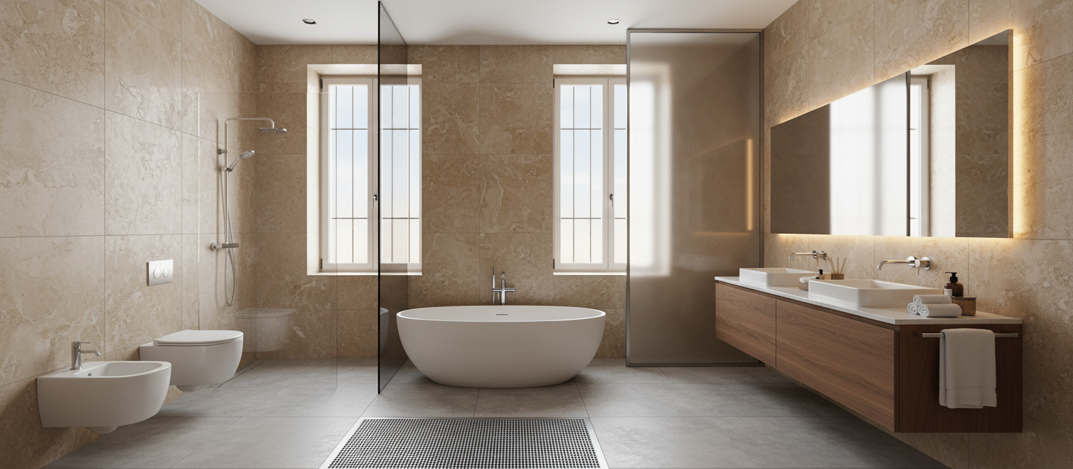 two hyper realistic renderings the landscape behind the windows consists of countryside with fields keep the shape of the joelle and its height the slab edges are in white plaster