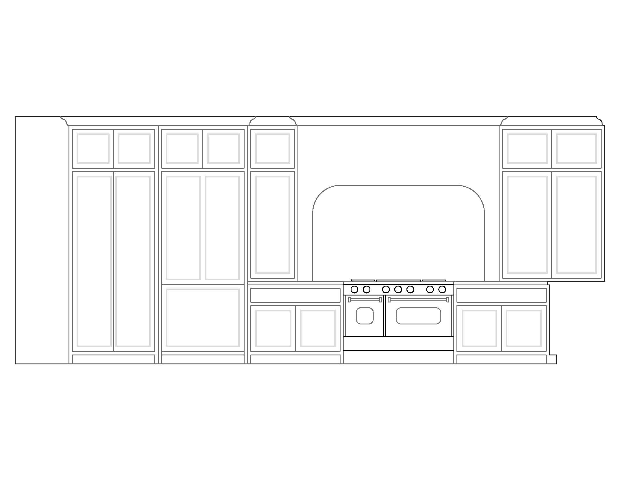 solid light wood cabinets with white arch and light marble backsplash windows on right wall with cabinet and sink underneath