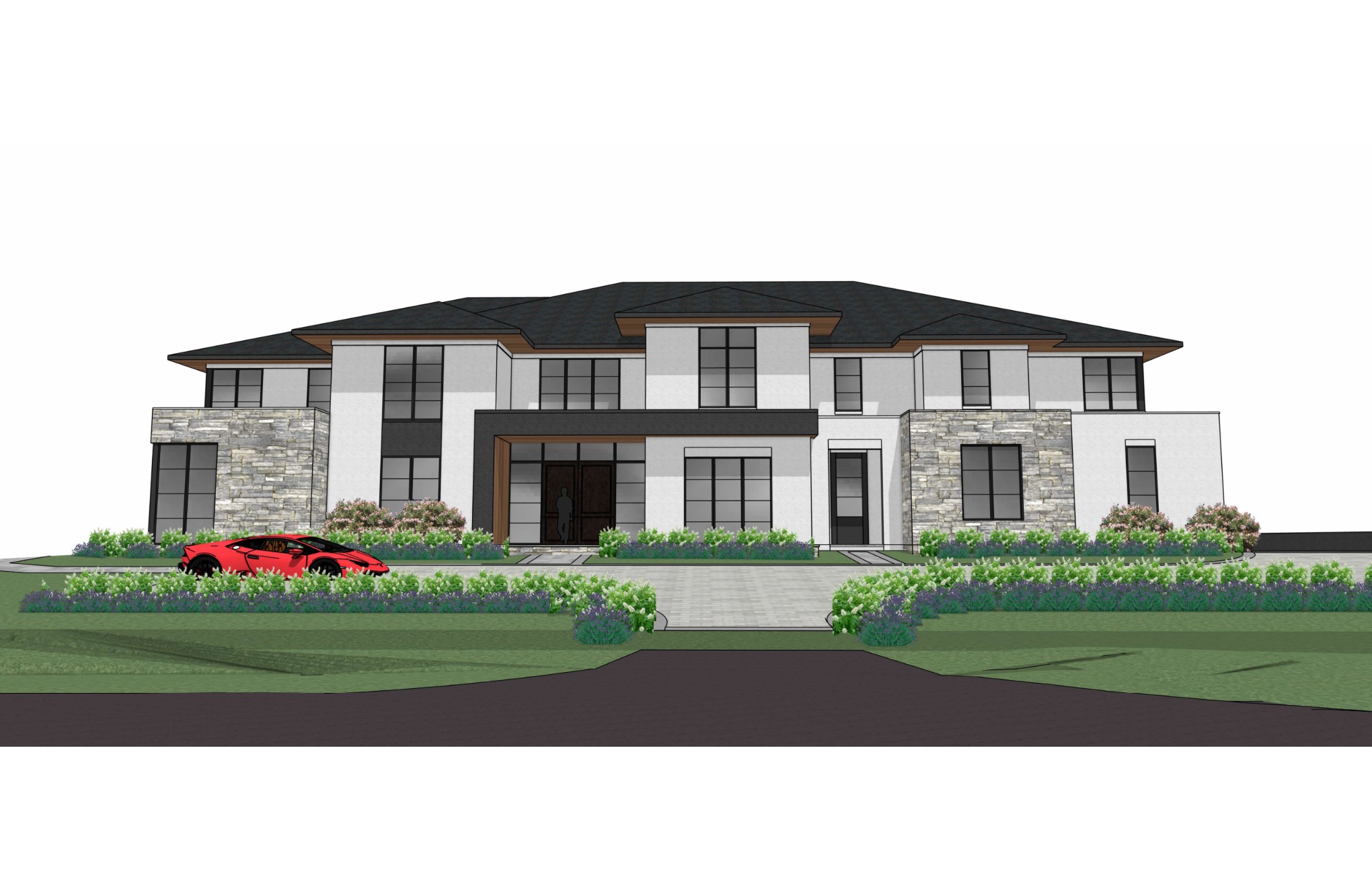 add more realistic materials vegetation and landscaping place building in a suburban setting with sky and light vegetation throughout the distance