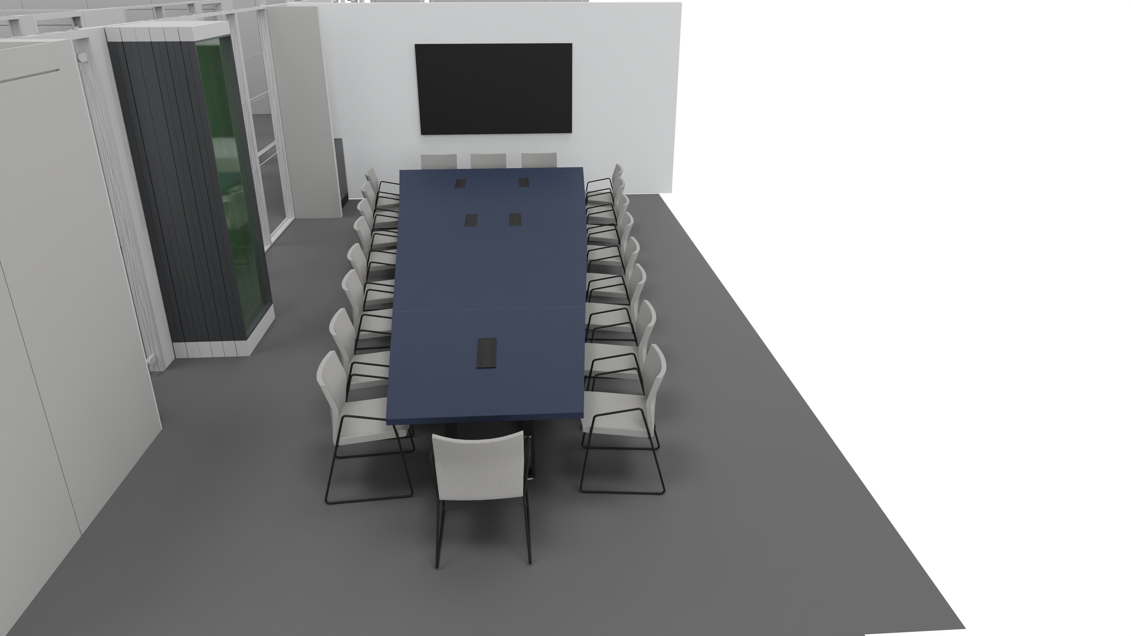elimina l esterno aggiungi un vaso con pianta da ufficio in un angolo il pavimento deve essere a quadrotte 60x60 grigio antracite effetto marmo opaco togli la parete centrale che divide le due salette e unisci i due tavoli nella parte centrale
