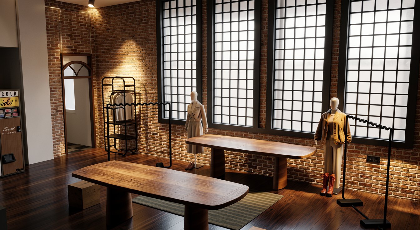 create a realistc top down 3d rendering using walnut for cabinetry and white oak for the floors make the style a modern interior make the countertops blue roma quartzite