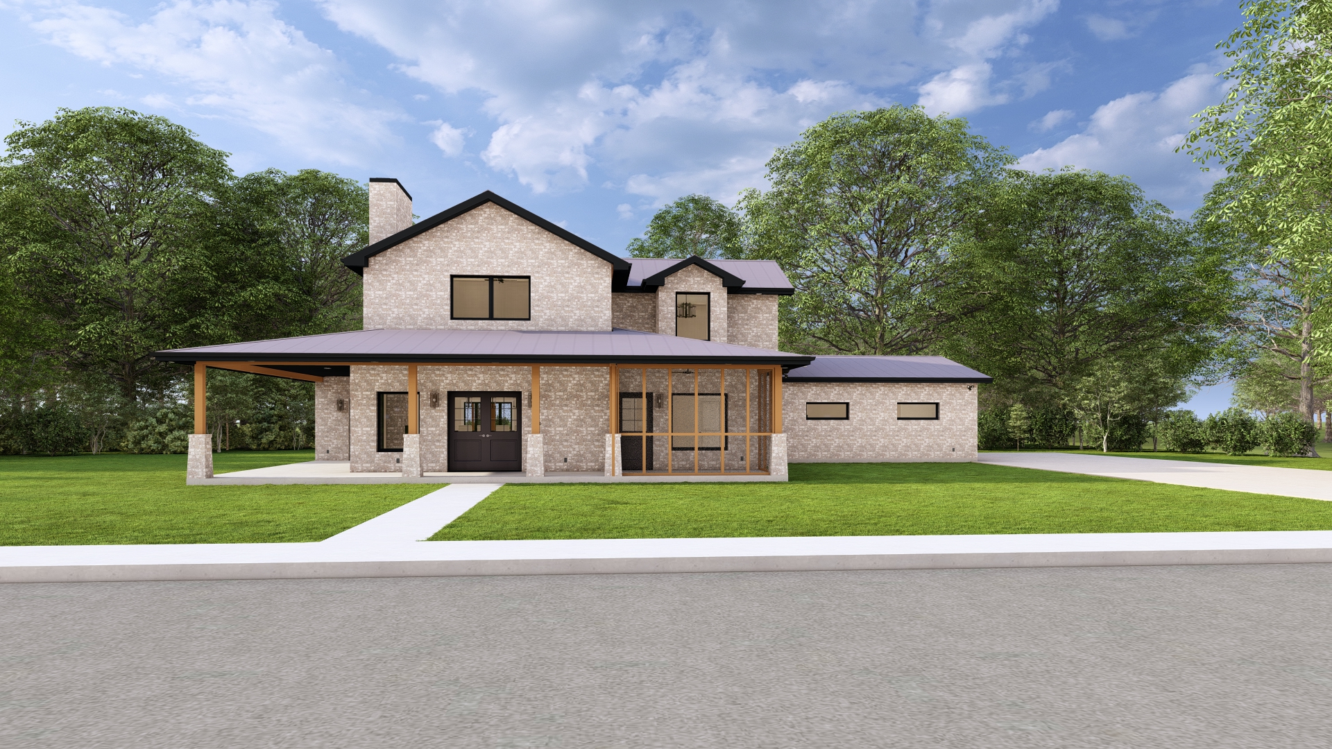 make this more realistic the lights are slightly visible in the windows it is a sunny day