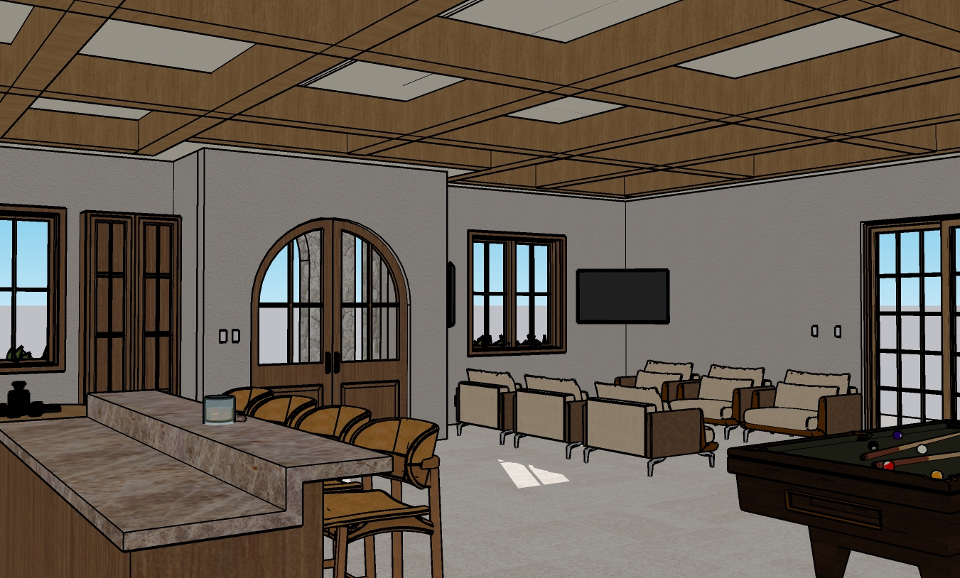 ceiling lights between the beans