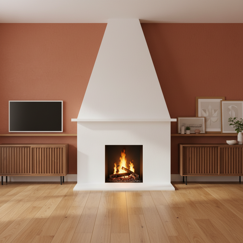 white fireplace and shelves terracotta wall walnut cabinets mid century modern simple fireplace wall oak floors