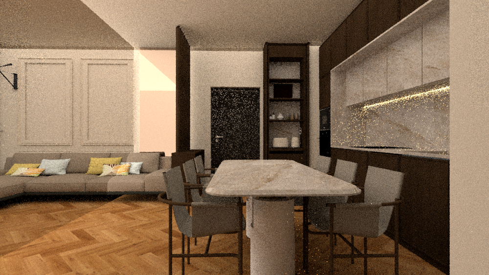 transform the provided restaurant interior image into a high end photorealistic render with warm golden hour atmosphere soft glowing highlights and relaxed upscale coastal energy while keeping everything exactly the same same proportions same bar shape same booth seating same ceiling curves same wall finishes same yellow curtains same materials and same spatial configuration do not move or alter any objects geometry textures colors or furniture positions the chairs throughout the restaurant must remain exactly in the same locations and proportions but their materials should read realistically the bar stools should appear upholstered in soft reddish brown leather with subtle natural sheen and cushioned tactile texture the dining chairs at the tables should appear in the same reddish brown tone but upholstered in soft velour with a matte plush surface and gentle directional nap while keeping their shapes frames and positions unchanged add premium table settings including wine glasses champagne flutes tropical style cocktails elegant plates cutlery cloth napkins and a seafood tasting arrangement with oysters while keeping all tables and chairs in their exact positions include modern young guests seated at the bar and at selected tables casually social correctly scaled tastefully integrated without crowding or obstructing architectural details add two bartenders behind the bar preparing drinks and interacting naturally while preserving the bar s structure and alignment the mosaic seafood display counter must clearly appear filled with ice fish lobsters shrimp and shellfish with cool reflections moisture and texture while keeping its exact position and shape unchanged on the bar shelves add wine bottles and premium alcohol bottles arranged tastefully and evenly while keeping the shelving structure unchanged the shelving should feature warm and bright accent lighting enhancing reflections and bottle silhouettes the wall behind the bar shelves must clearly appear as amber glass in a deeper richer golden amber tone with a ribbed textured surface and illuminated from behind with warm vivid backlighting while maintaining its exact geometry proportions framing and alignment lighting should emphasize golden hour warmth gentle reflections soft shadows enhanced color richness and luxurious catalog level realism improve depth and realism through wood grain richness marble shine brass highlights fabric texture and polished clarity while keeping the entire scene exactly as originally designed