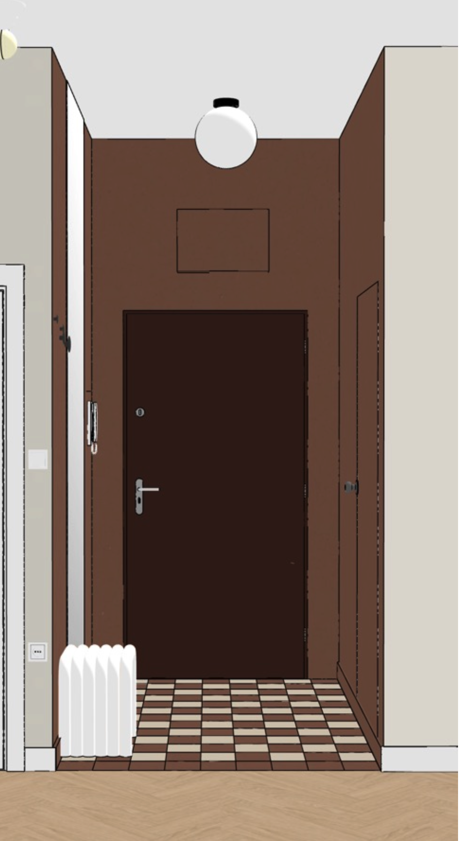this is entrance to apartament three are brown painted walls