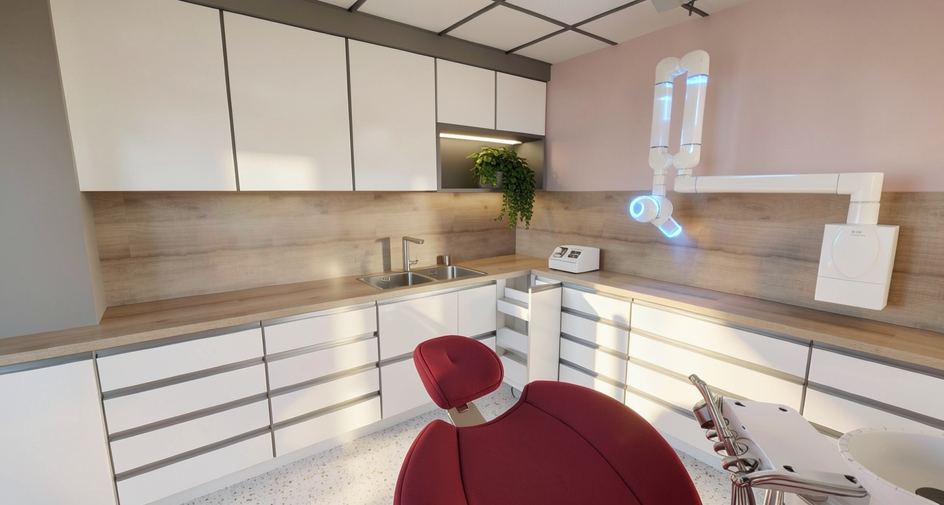 make realistic render the metal parts of the x ray are platic white also the parts of the detnal unit on the right side the upholstery colour is more pink like orchid