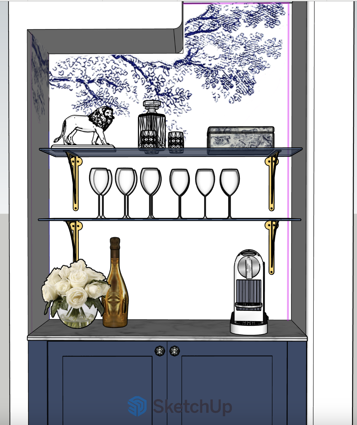 interior nook with navy blue cabinet swavorski crystal cabinet knobs crystal glass wear clear wine glasses