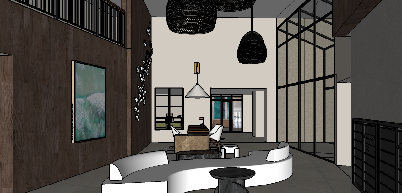 renderas hand sketch match style as reference image very slight rustic texture and color tone to wood match as shown in reference image no color anywhere else ceiling to show 24 60 act tile