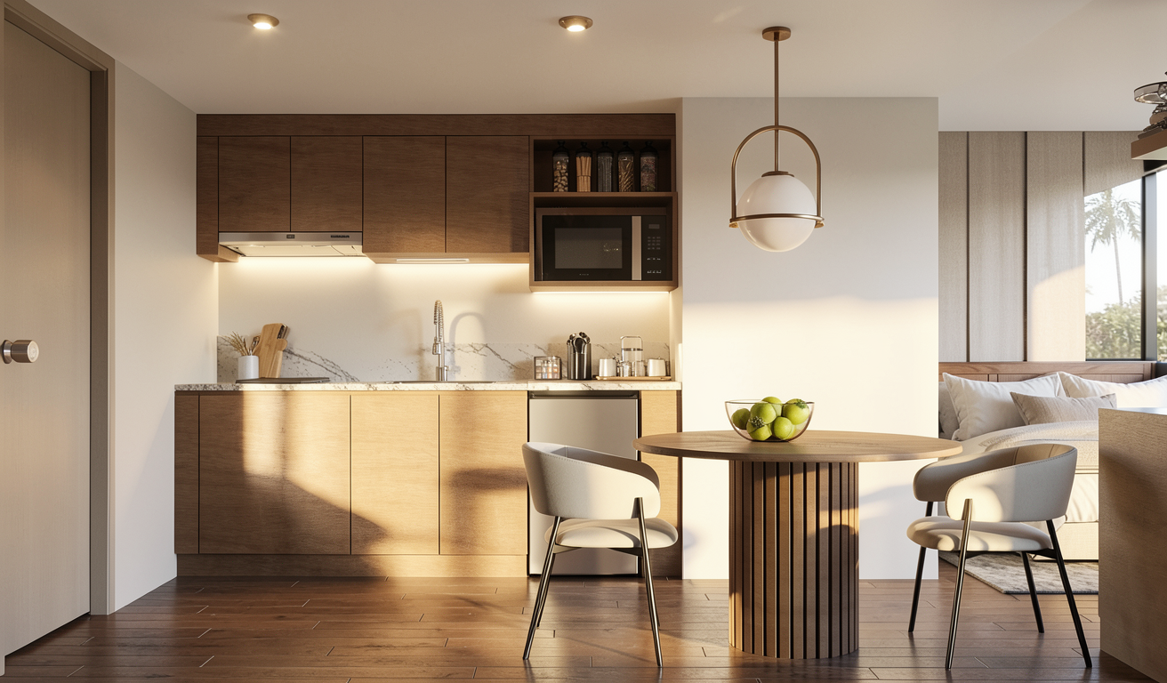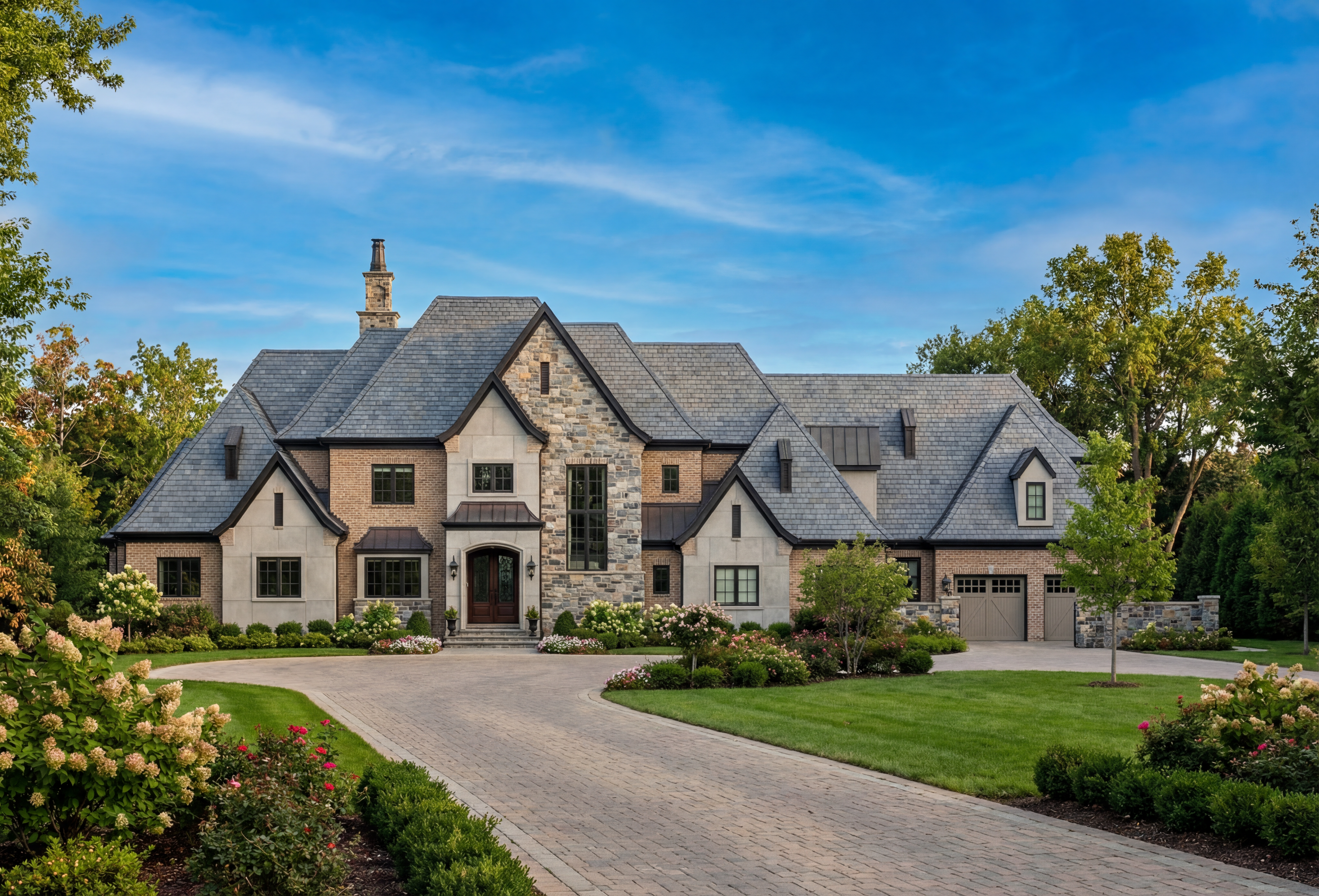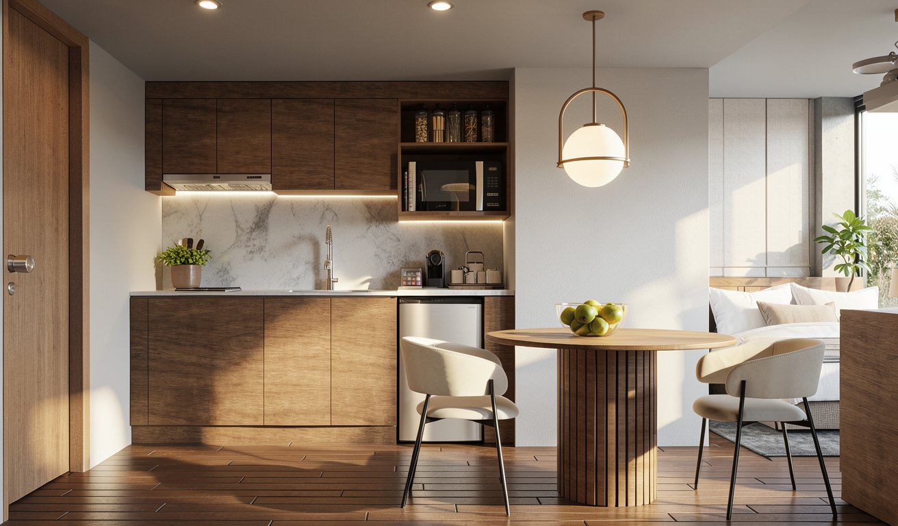 create a warm and inviting residential scene inspired by contemporary dutch architecture the main buildings should feature facades made of red brown mottled brick with window frames in an orange red brown tone behind the designed building on the left side and in front off the building add hedges allow some subtle visibility of modern interior elements through the windows with bedrooms located on the upper floors and a living room on the ground floor adjacent buildings may appear more abstract while still maintaining a sense of neighborhood cohesion and should be entirely bright white to create contrast between the sidewalk and the lower edges of the window frames include a trasraam plinth made of pigmented concrete in the same color as the window frames depict an autumn like day in the netherlands with soft slightly diffused daylight and gentle warm tones on the right side of the scene where the green ground area appears include grass with flowers additionally show a few people walking or cycling to create a calm community oriented atmosphere