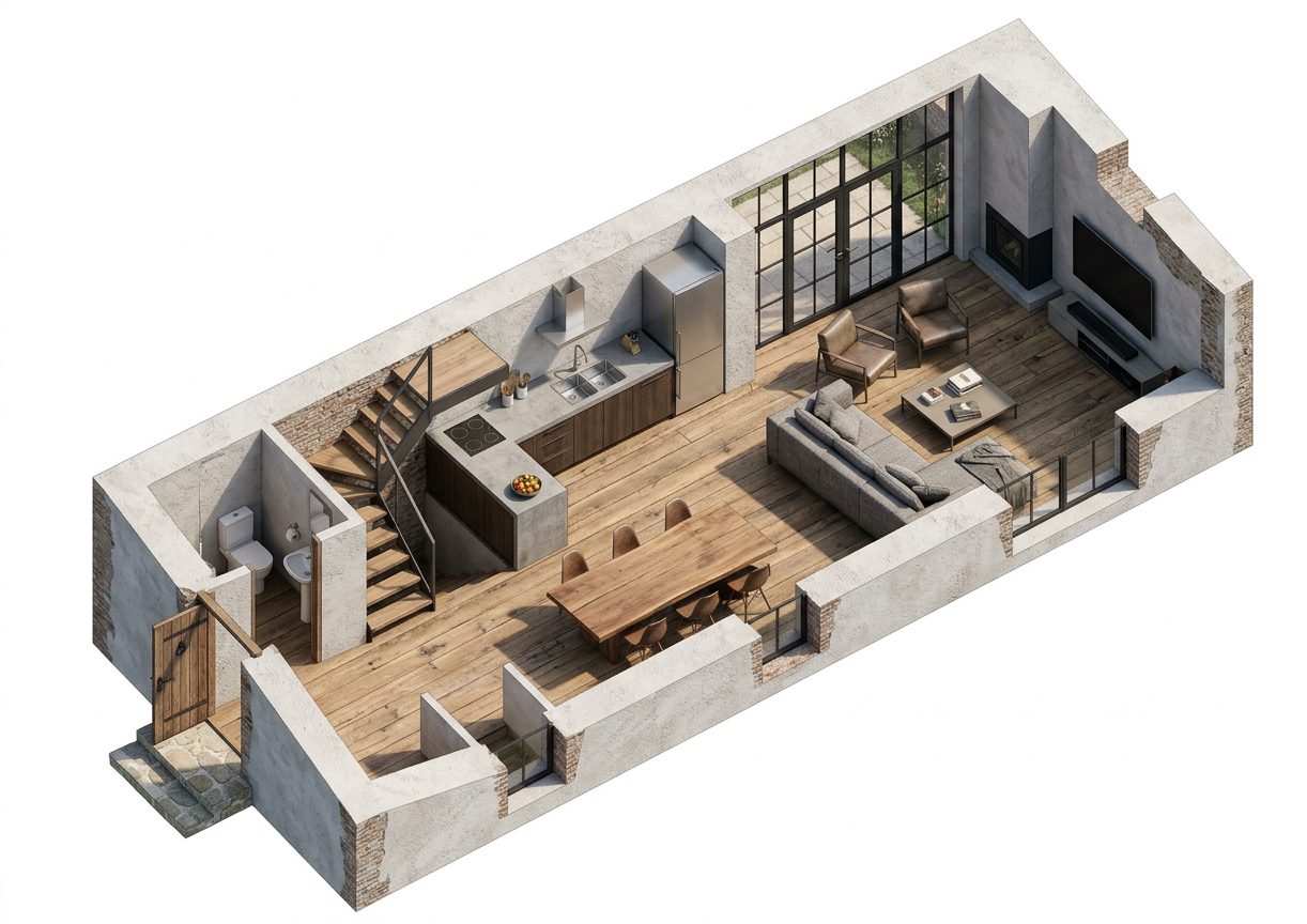 you are a professional image renderer you create the highest grade renderings around and specialize in architectural renderings this is an exterior rendering of a beach house create a high resolution photorealistic image of this home keep the windows as they are where they are keep the doors as they are where they are keep all the structure and detail brackets and shutters as it is where it is feel free to change the perspective keep the ceiling as it is where is it do not add anything to the structure that i have not asked for