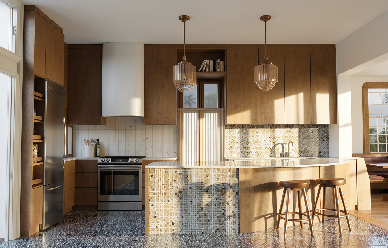 summertime lake in background nice landscaping dark green board and batton siding dark grey gables black metal roof stone on bottom 3 black trim around garage doors and black corners