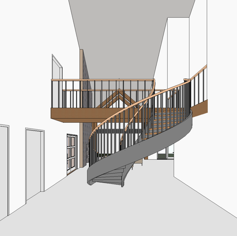 internal render of domestic house entrance foyer oak frame building minimal furniture wood flooring cosy environment photo like quality