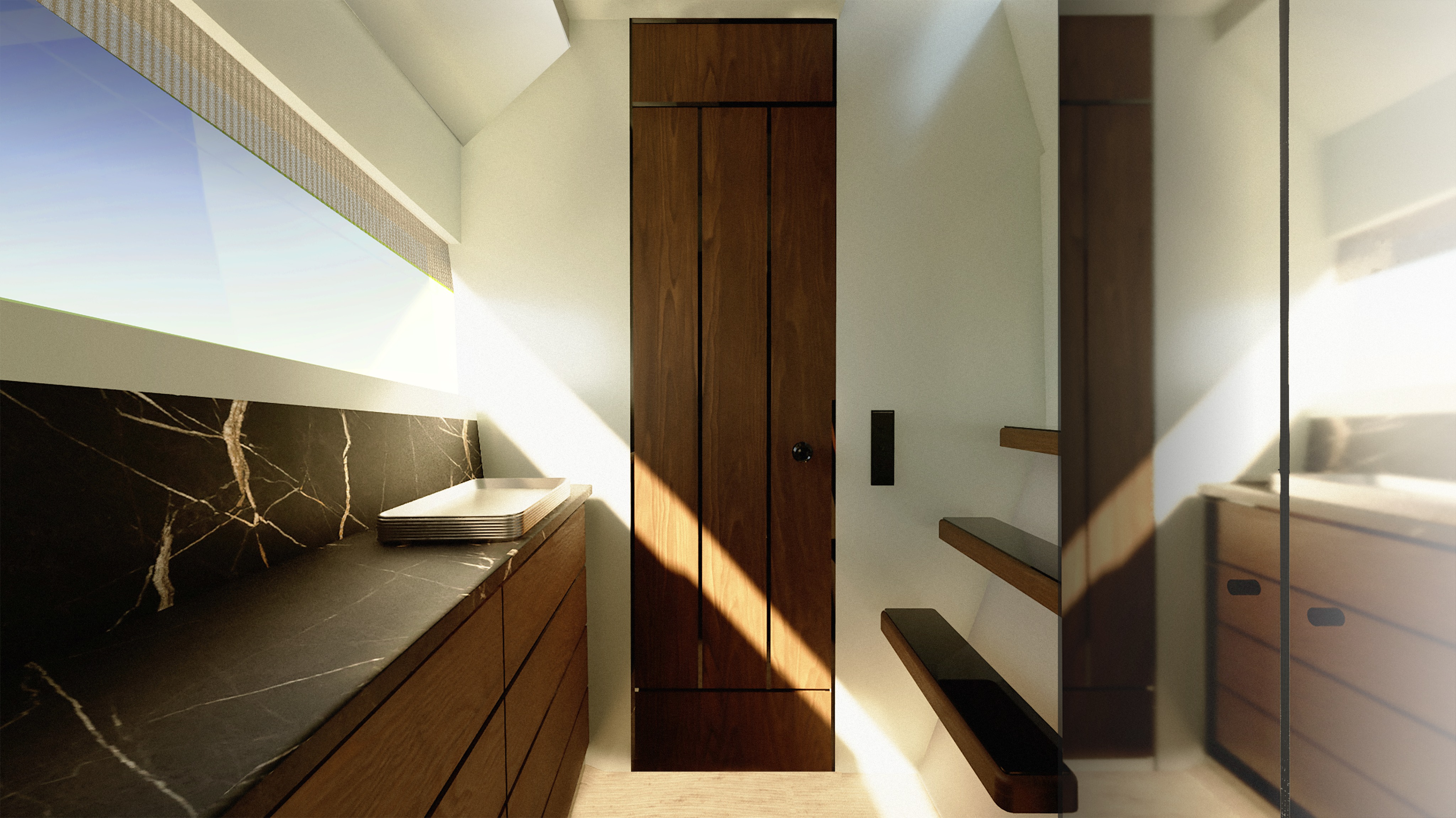 modernist exterior shot make the marble more realistic make the top part of the steps inox give a more realistic sky make the lighting a little vit more dramatic make the brushed aluminium surface on the top left of the image a bit more shiny as inox architecture