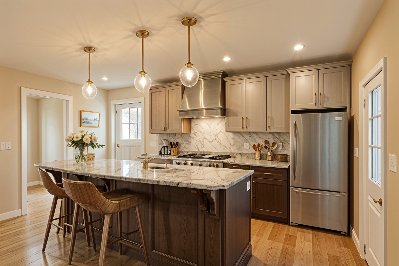 urob z tejto vizualizacie fotku uprav textury svetlo materialy aby to vyzeralo ako fotografia toho priestoru na podlahu daj material od forba marmoleum fresco silver shadow