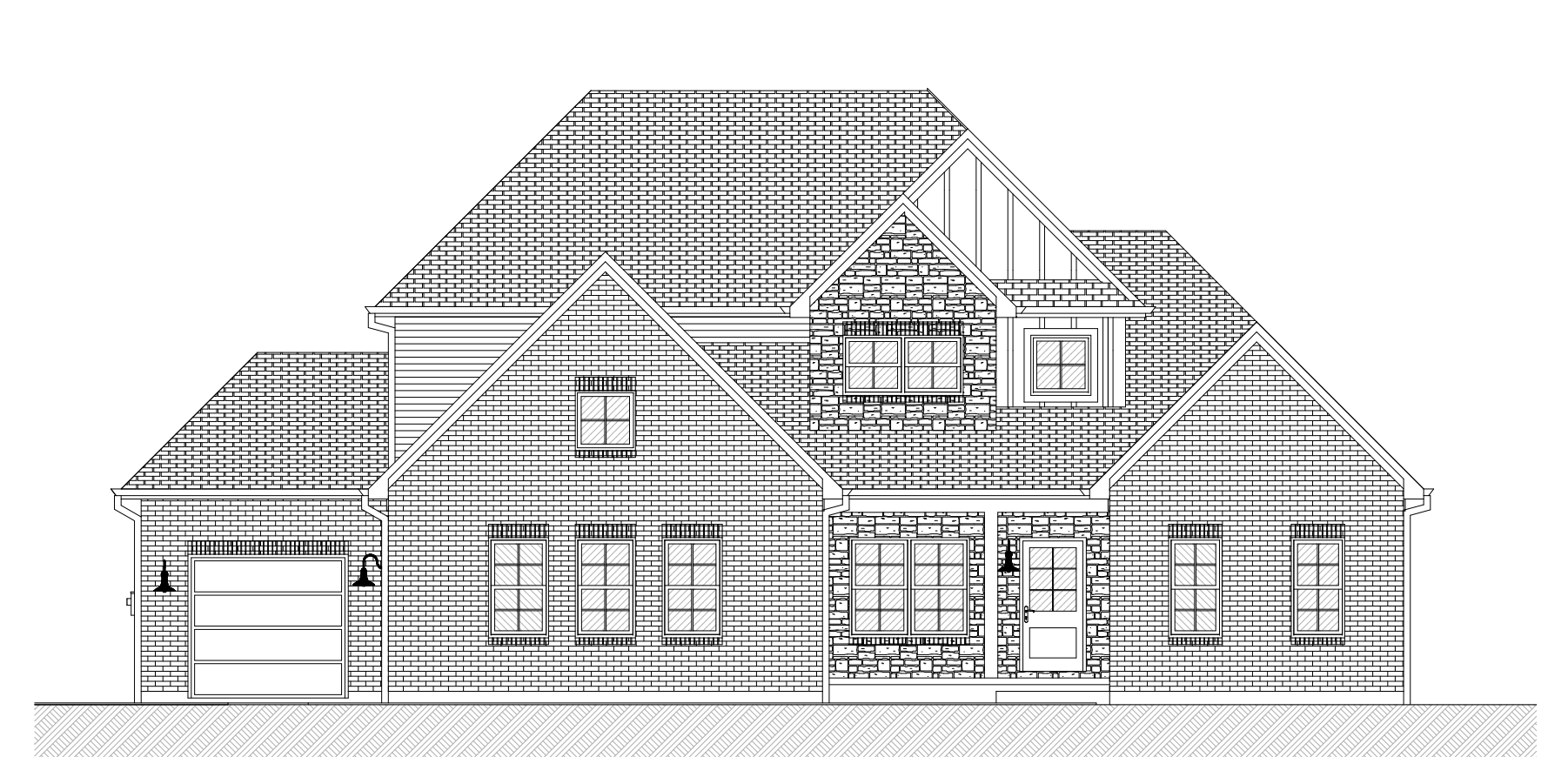 midwest summer with green and white flowers and trees james hardie cobblestone siding black roof white soffit white fascia black gutters white garage door black front door black windows white painted front porch column and header mid light grey brick and provia s ottawa dry stack manufactured stone