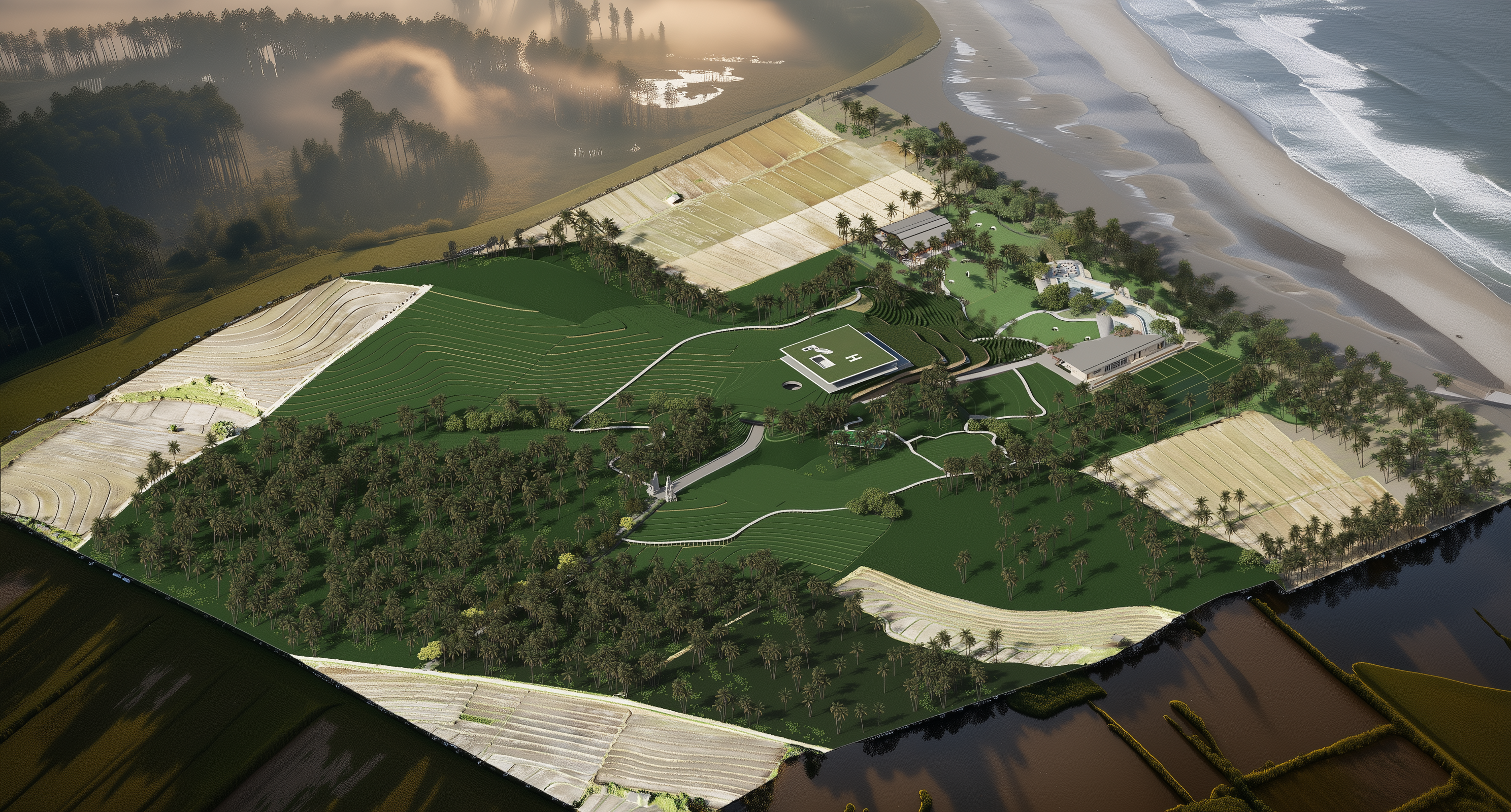 enhance the existing bird s eye view render to be more realistic and detailed while keeping the composition and angle exactly the same