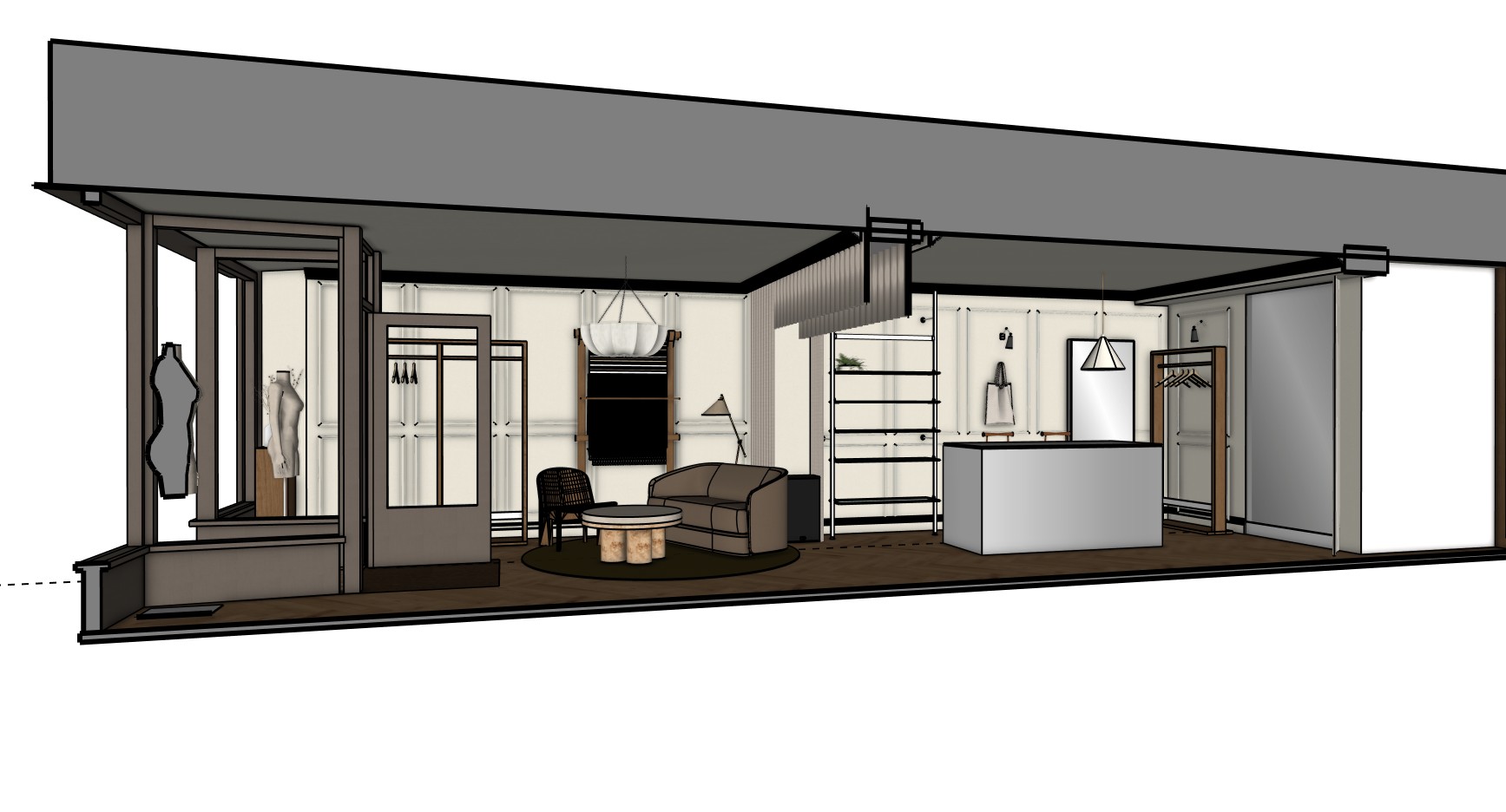 please can you make this sketchup view a hand sketch with a thin line fineliner top layer and soft hand water colour style render underneath colour to blur out around the edges so the edges of the drawing are black and white line only the blur out of colour should be loose and uneven so looks naturalistic the floor texture can look quite detailed can you show natural light and shadow spilling in from the window on the left