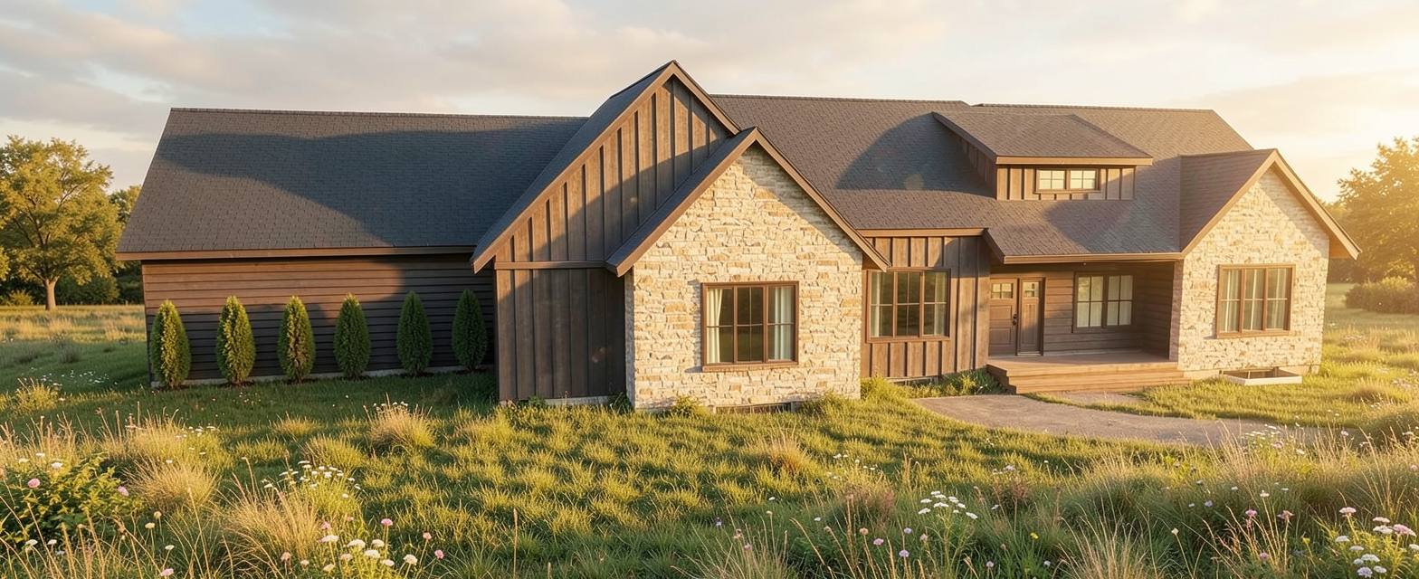 convert this floor plan into a realistic isometric 3d view of a full house show the space from an elevated angle with furniture walls and details visible 36 91 m2 is open space with living room and dining room and lot of lights 9 03m2 is kitchen and 2 90m2 is pantry 3 68 m2 is entrance hall and 3 70m2 is mudroom 36 62m2 is garage 4 02m2 guest wc 5 83 bathroom 4 26m2 laundry room 4 bedrooms of 11m2 and 3 84 bathroom and 3 87 walkin closet use the same furniture as shows on the plan do not change the orientation of the floorplan