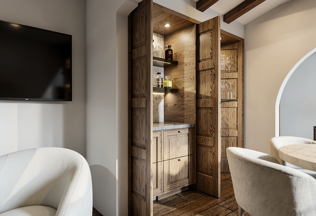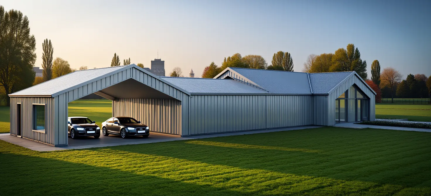 render a modern architectural structure with a sleek futuristic design the building is characterized by sharp angles and a unique staggered shape use a clean color palette featuring silver and metallic gray for the facade incorporate large reflective glass panels adding a touch of light blue to suggest a sky reflection highlight the structural lines with a subtle dark gray create an atmosphere of sophistication set against a clear blue sky on a crisp bright day the overall mood should convey innovation and modernity